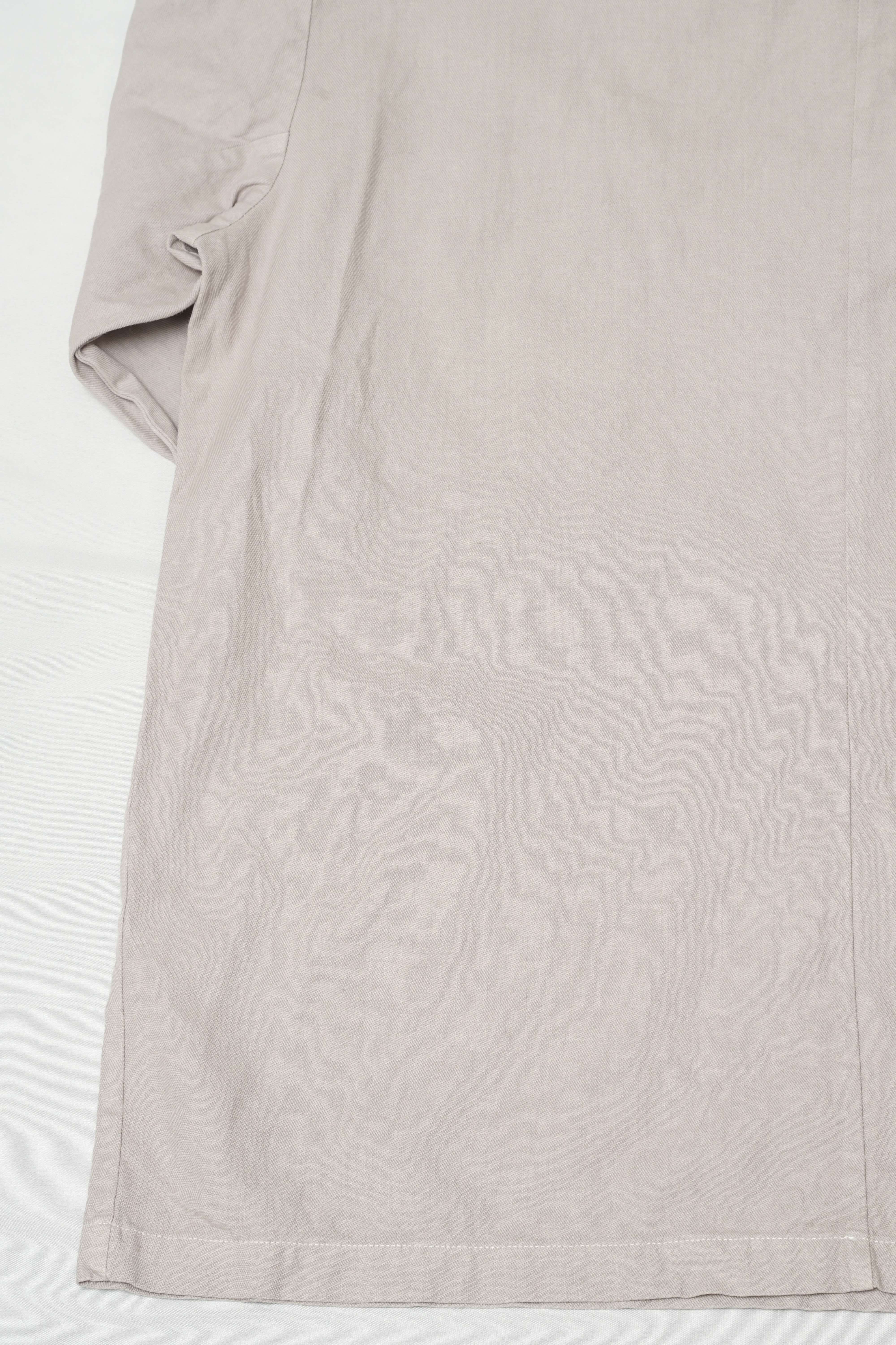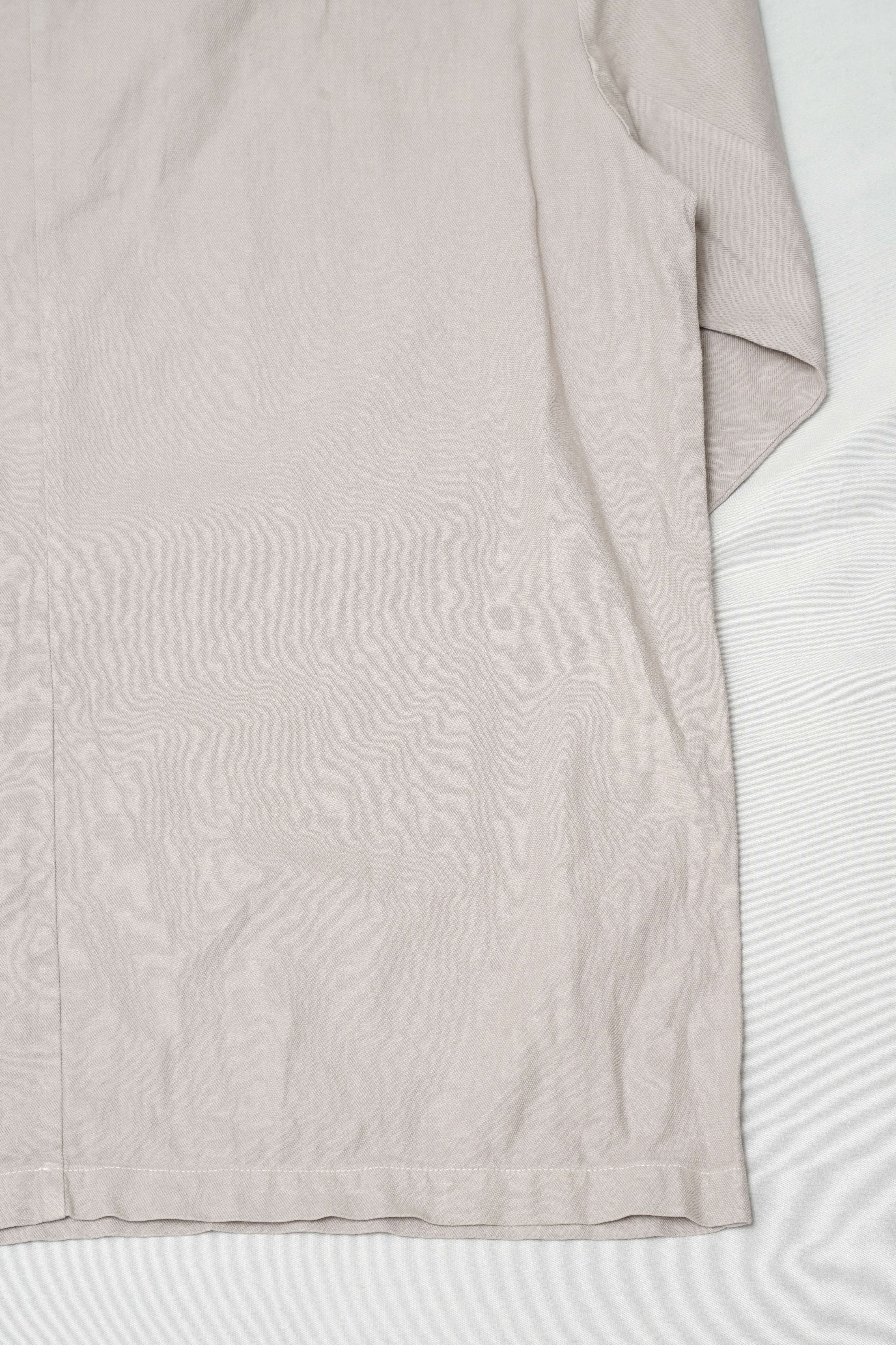 フロントワンボタン仕様で胸の開きがざっくりとしておりグランパシャツのように着こなすことが出来ます。左胸のポケットにはペンホルダーを装備。