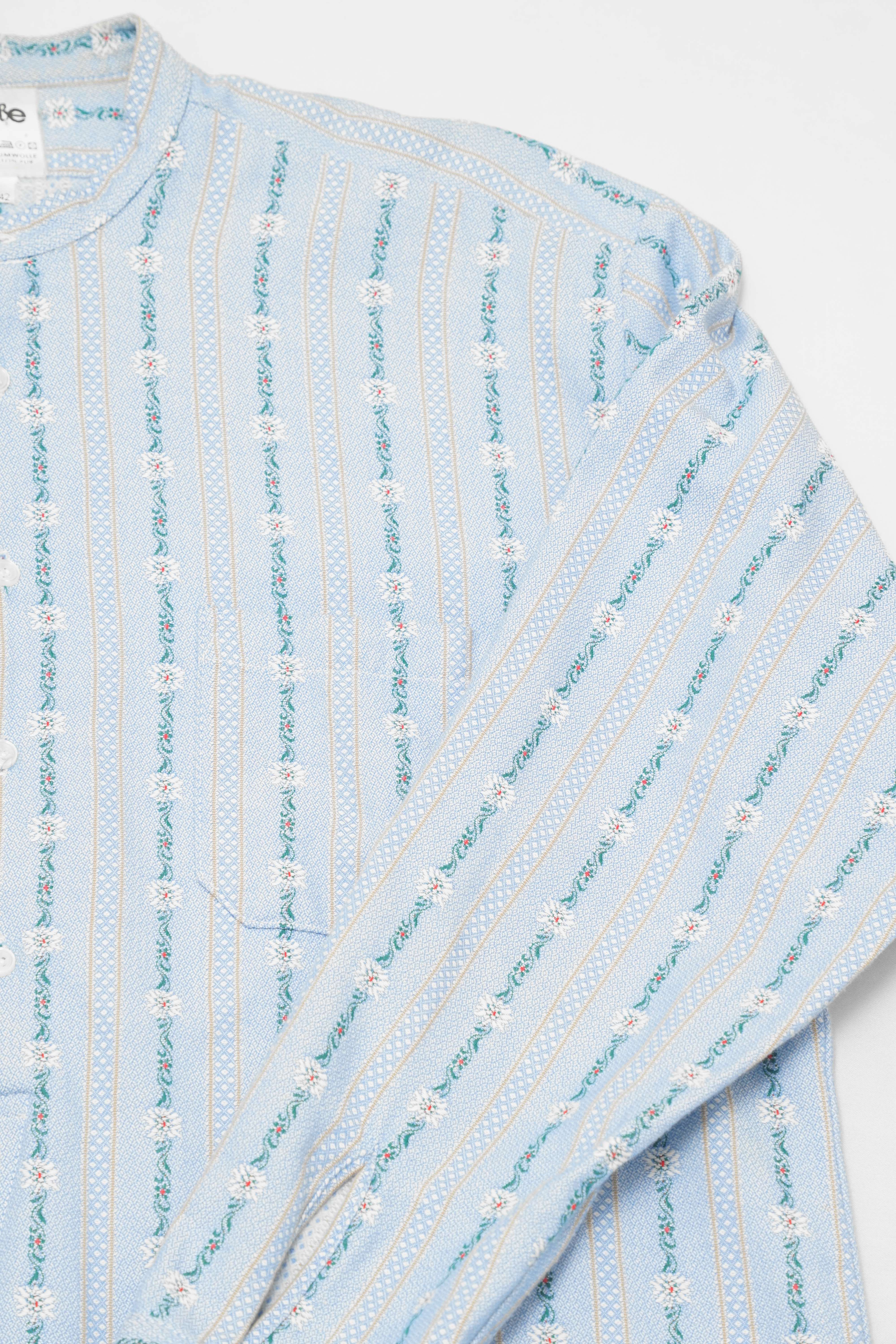 商品説明:スイスの国花エーデルワイスの刺繍が全体に施されたedelweiss-shirt社製のプルオーバー グランパシャツになります。