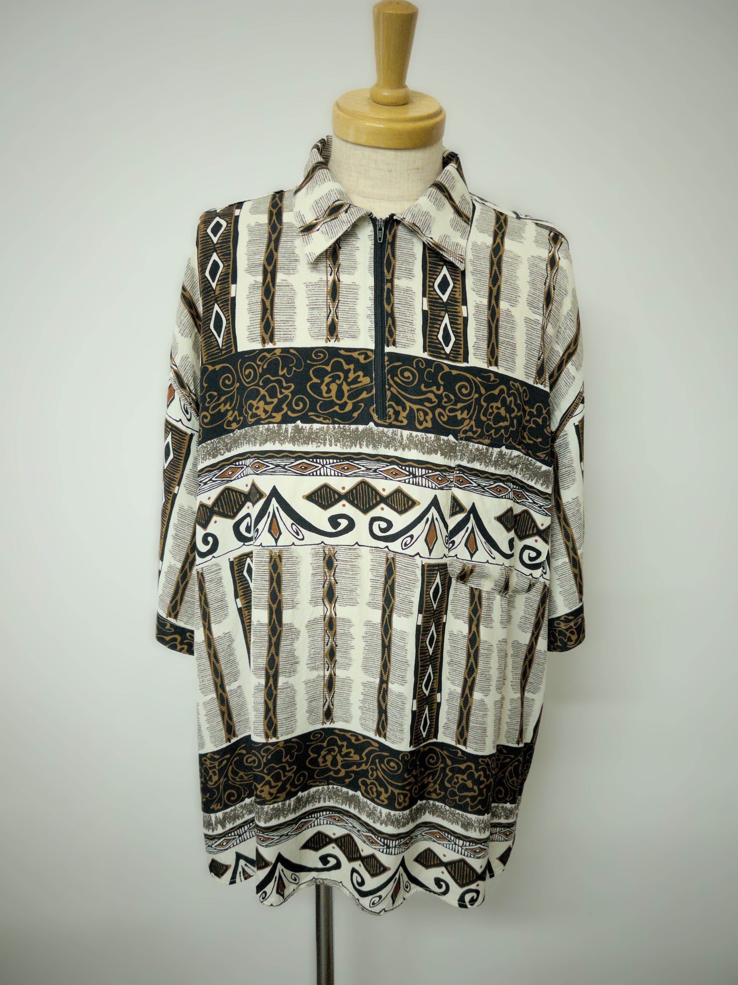 TIPO's ティーポズ プルオーバー バティック調プリント半袖シャツ