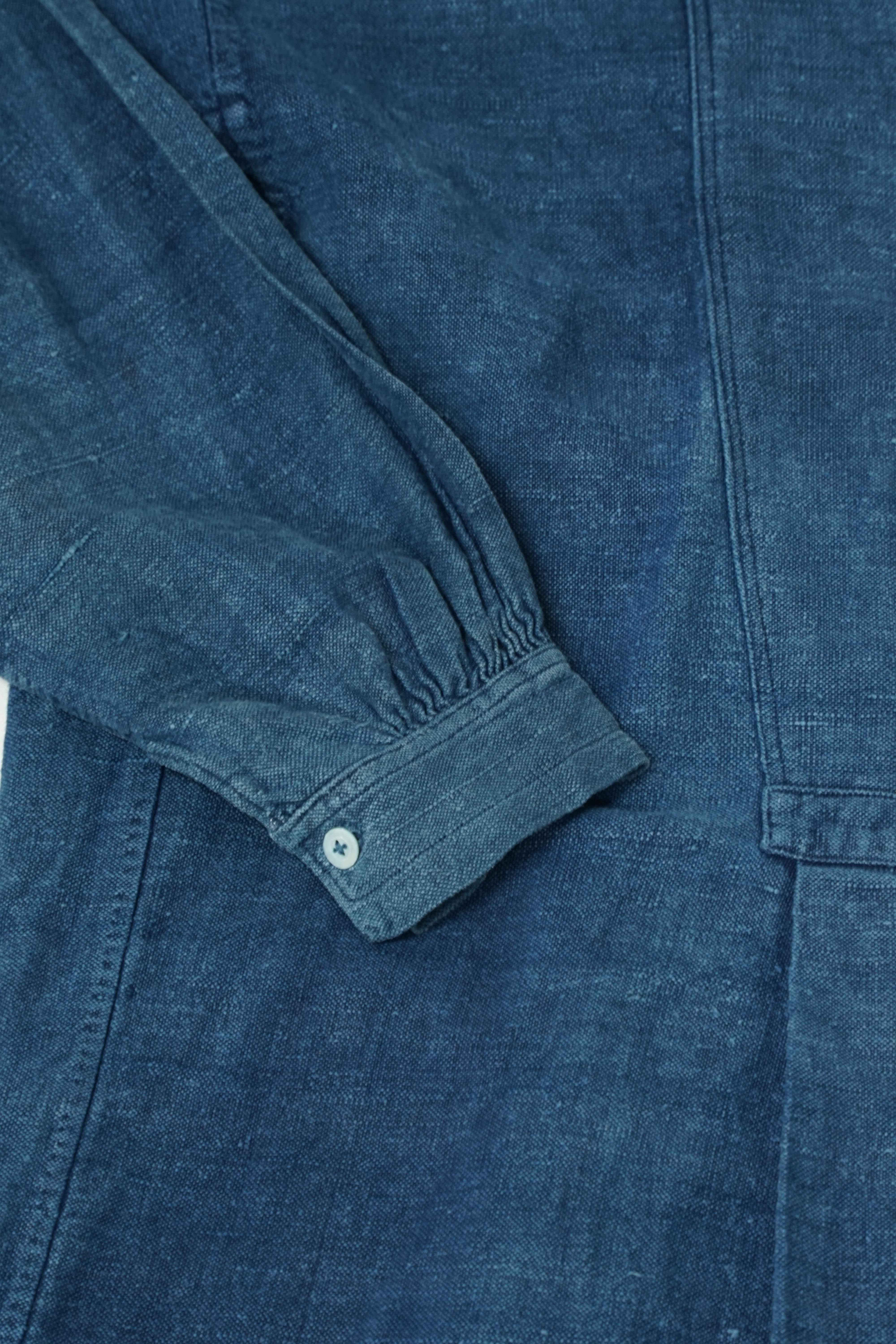 商品説明:1900年代初頭のインディゴ染め フレンチリネングランパシャツになります。