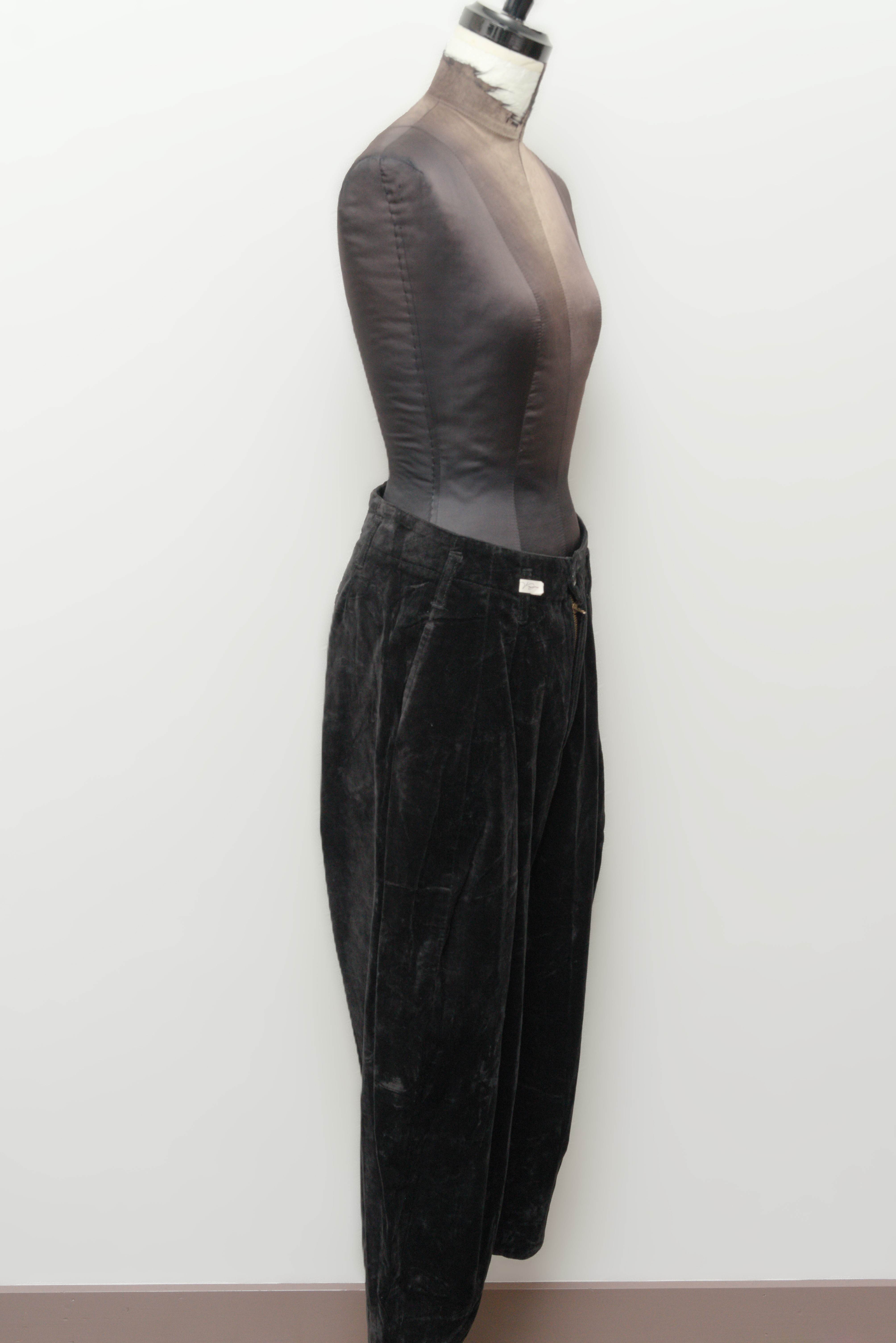 短い毛足と独特の手触りの「別珍」素材で出来たパンツです。独特な光沢感が特徴的な一着で秋冬コーデにオススメの一枚です。