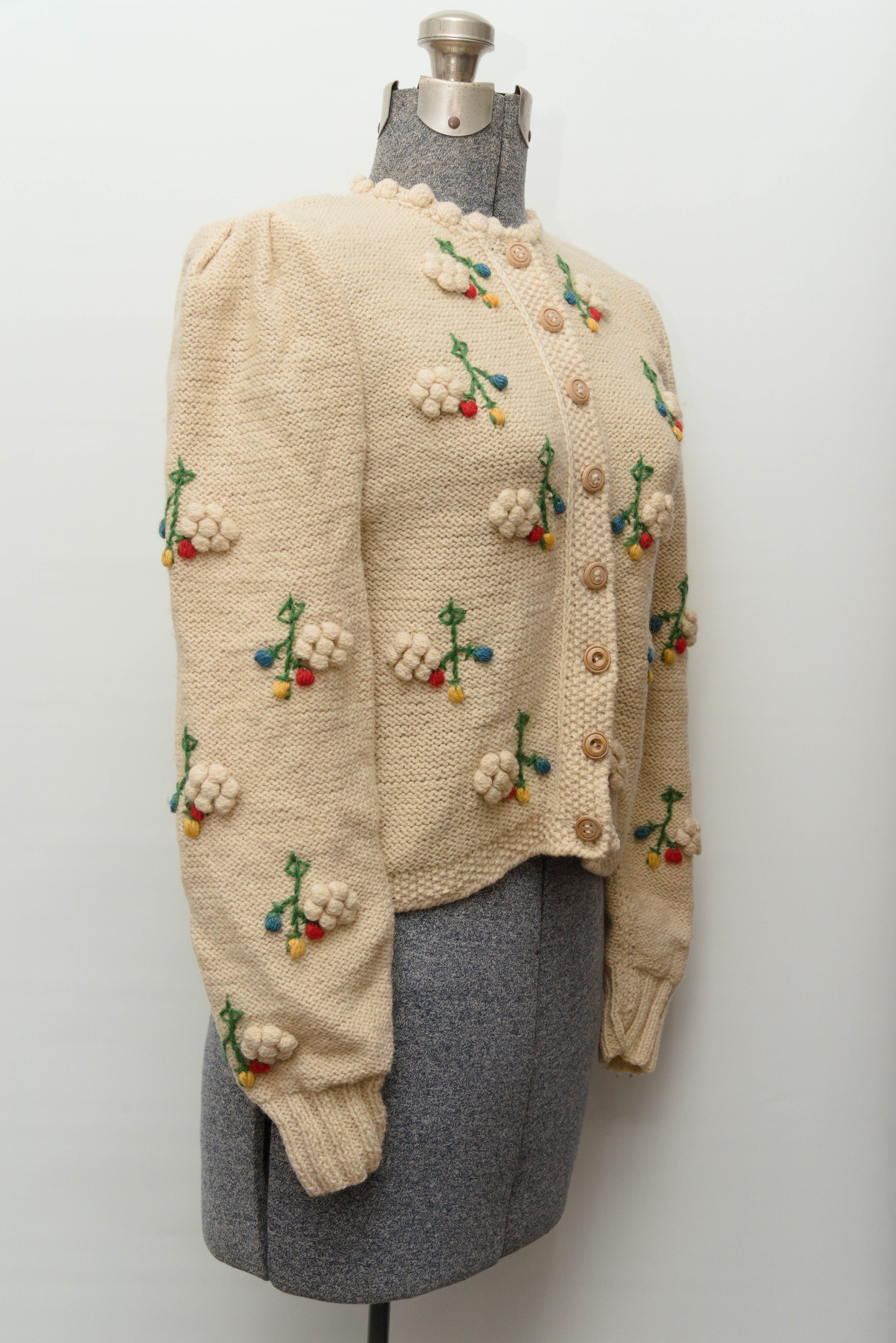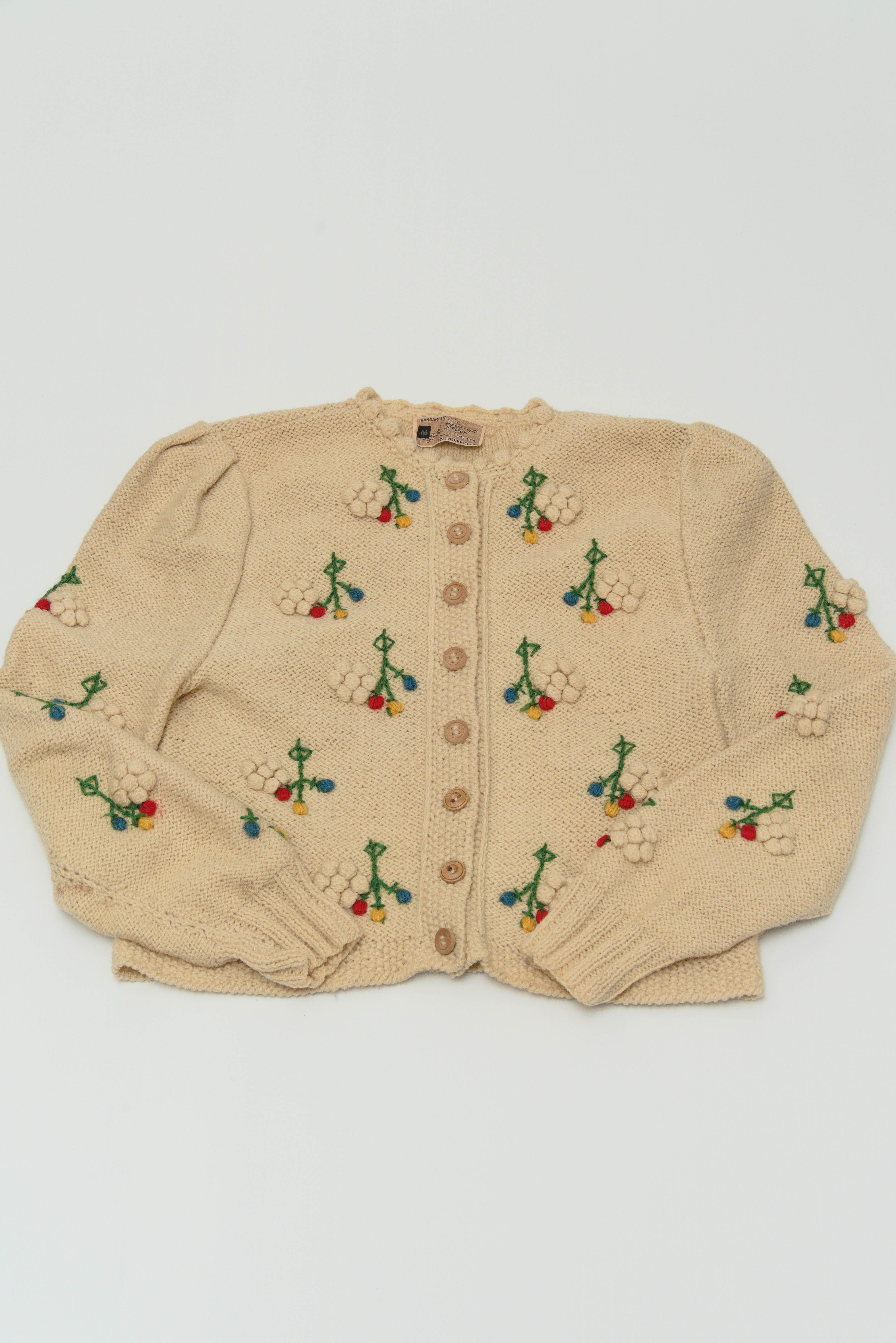 商品説明:オーストリア Wolken Stricker社製の80's頃のハンドニット 刺繍カーディガンになります。