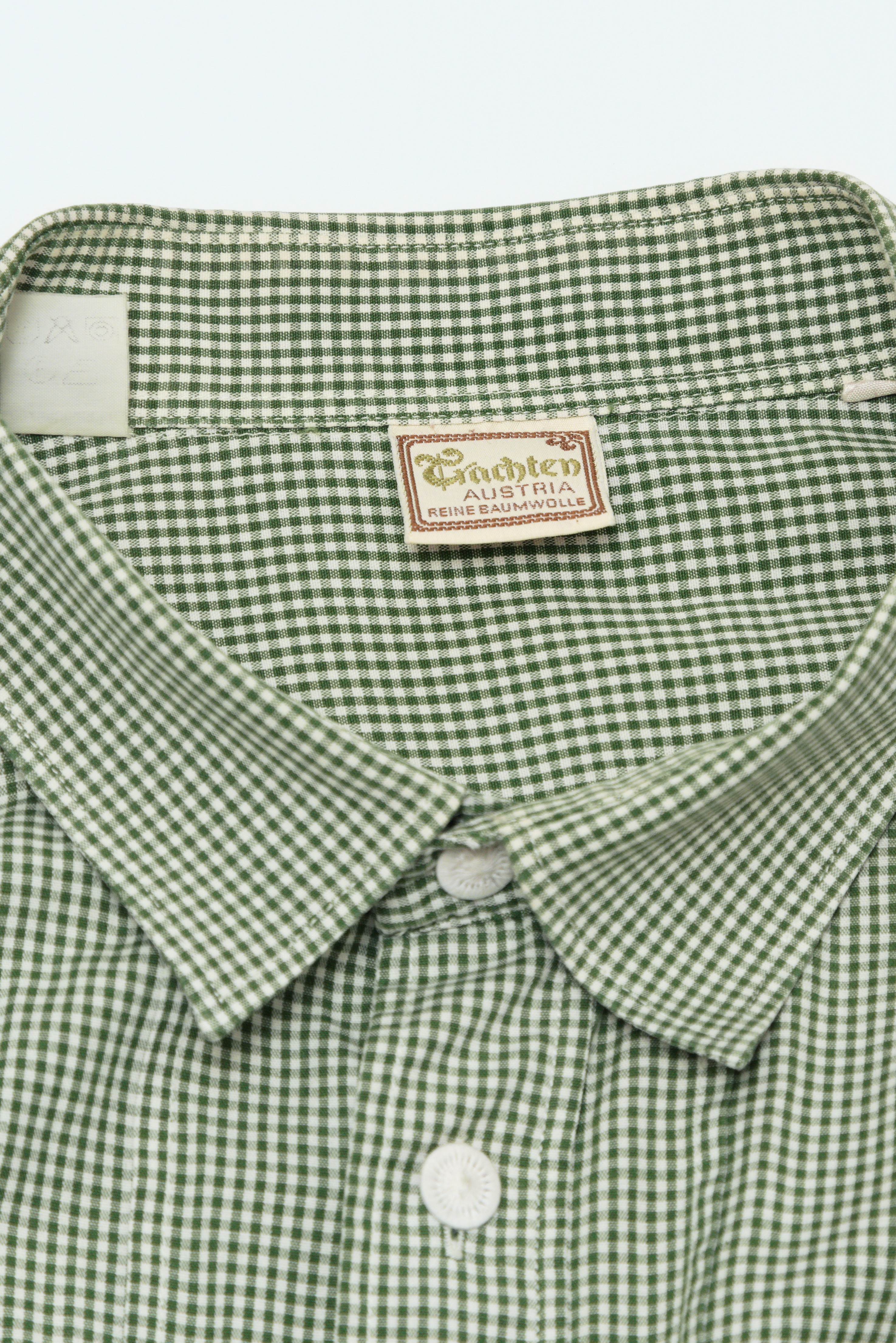 比較的薄手のコットン製でチロリアンシャツでは珍しいグリーンチェック柄。