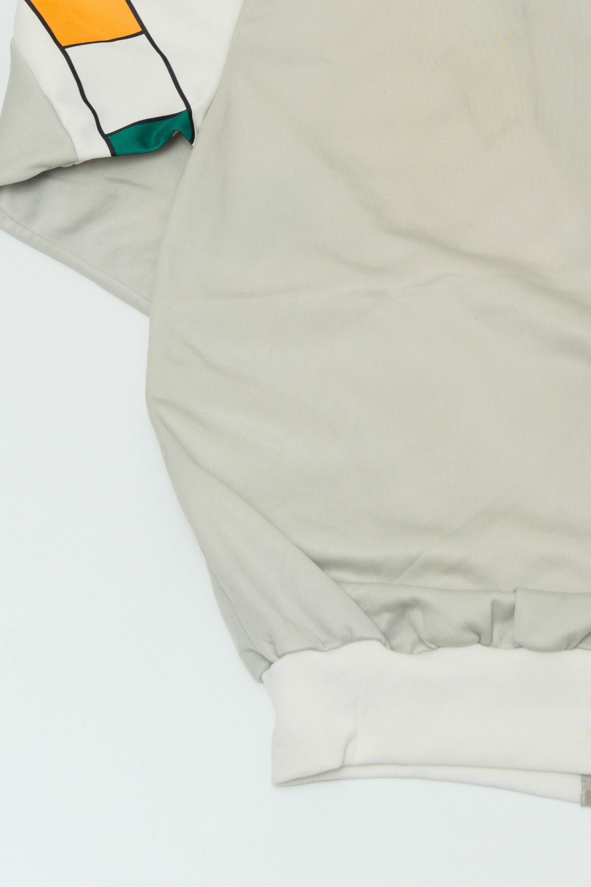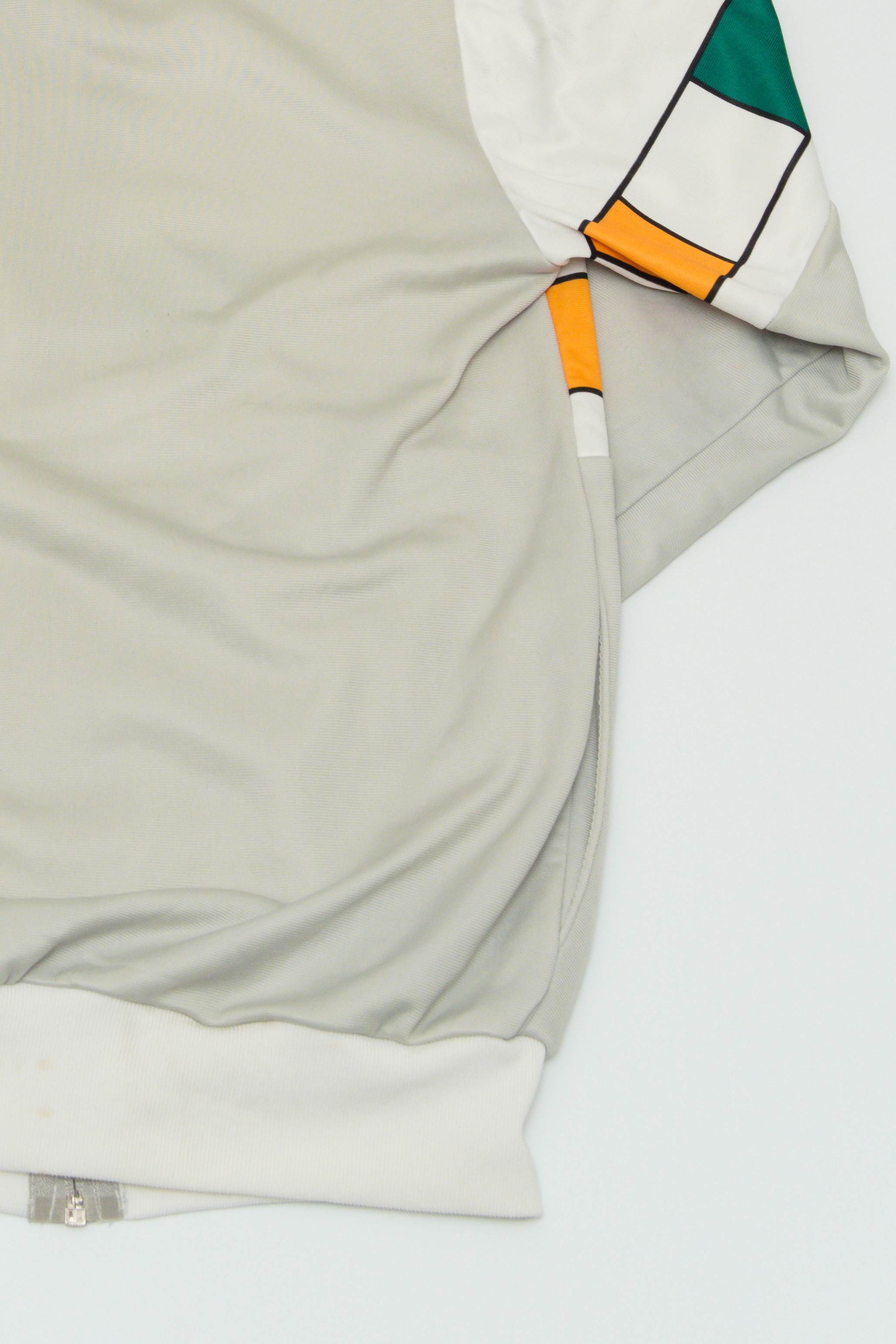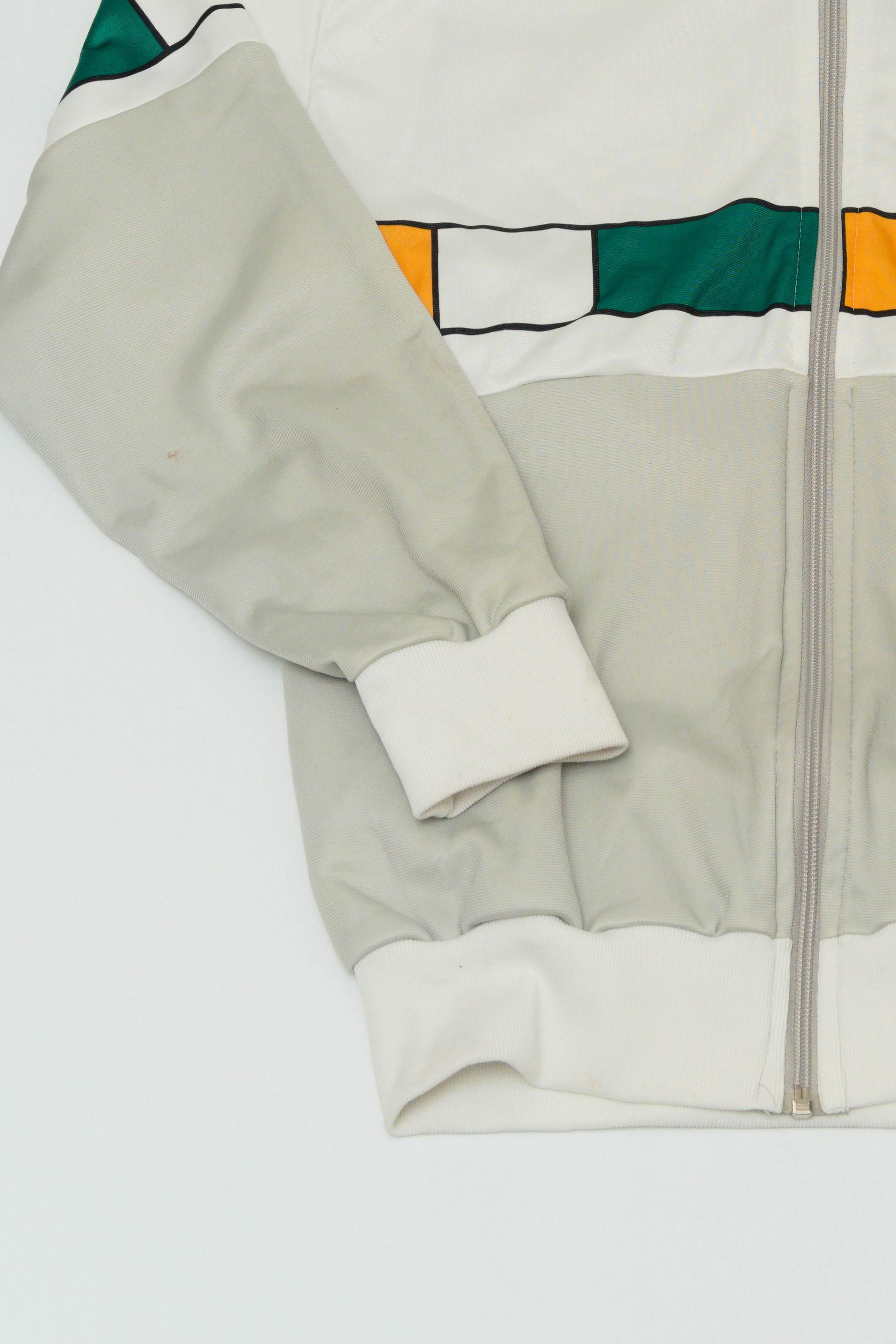 薄手の裏起毛地のトレーニングジャージで左胸には「GUARDIA DI FINANZA fiamme gialle」の文字がプリントされております。GUARDIA DI FINANZAはイタリアの財務警察や財務警備隊を指す準軍事組織で脱税や密輸、麻薬取引、詐欺、商取引犯罪などを管轄するほか、国境警備や沿岸警備も行っています。そして「fiamme gialle」はその中で活動しているスポーツチームの名称になります。日本語訳は「黄色い炎」