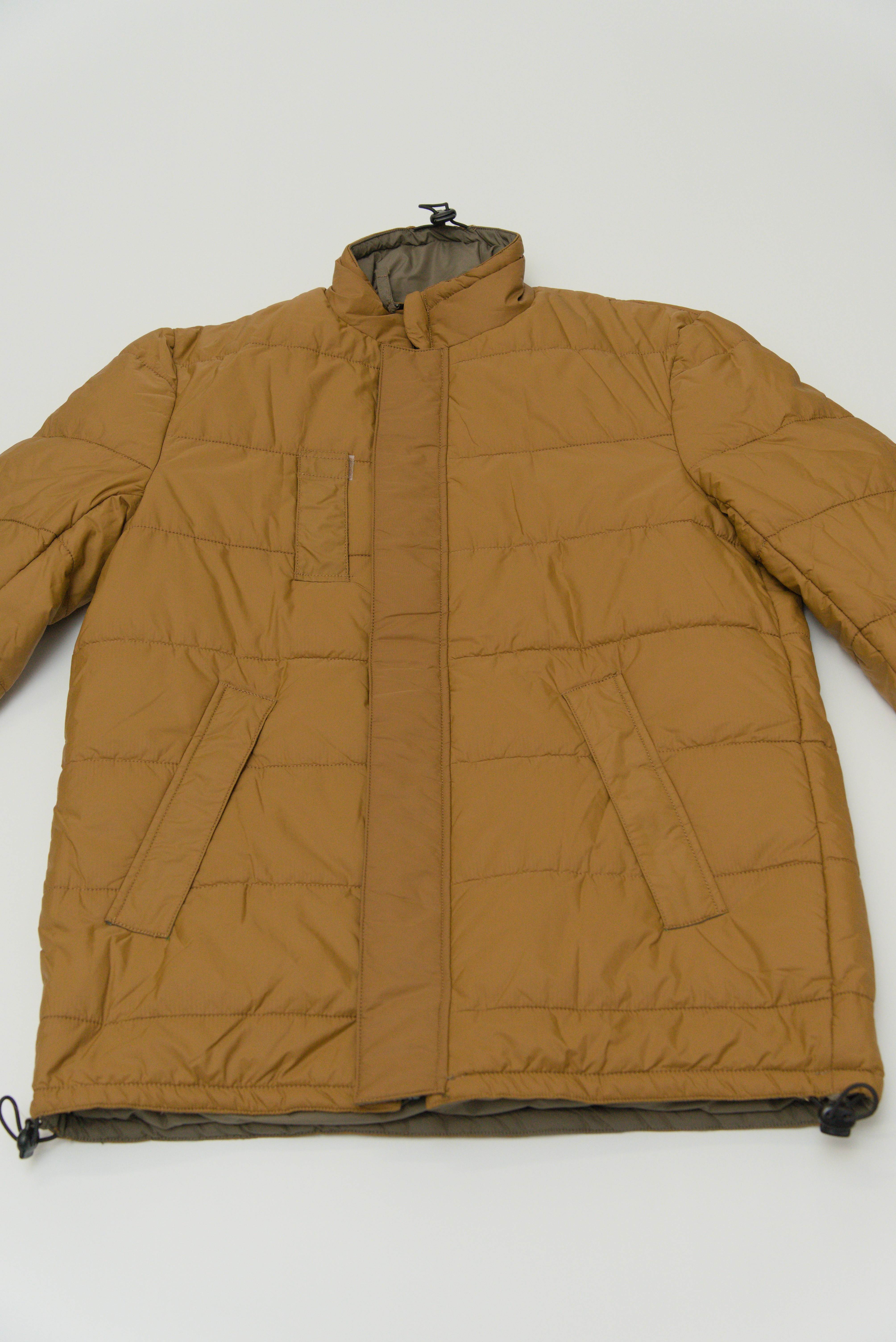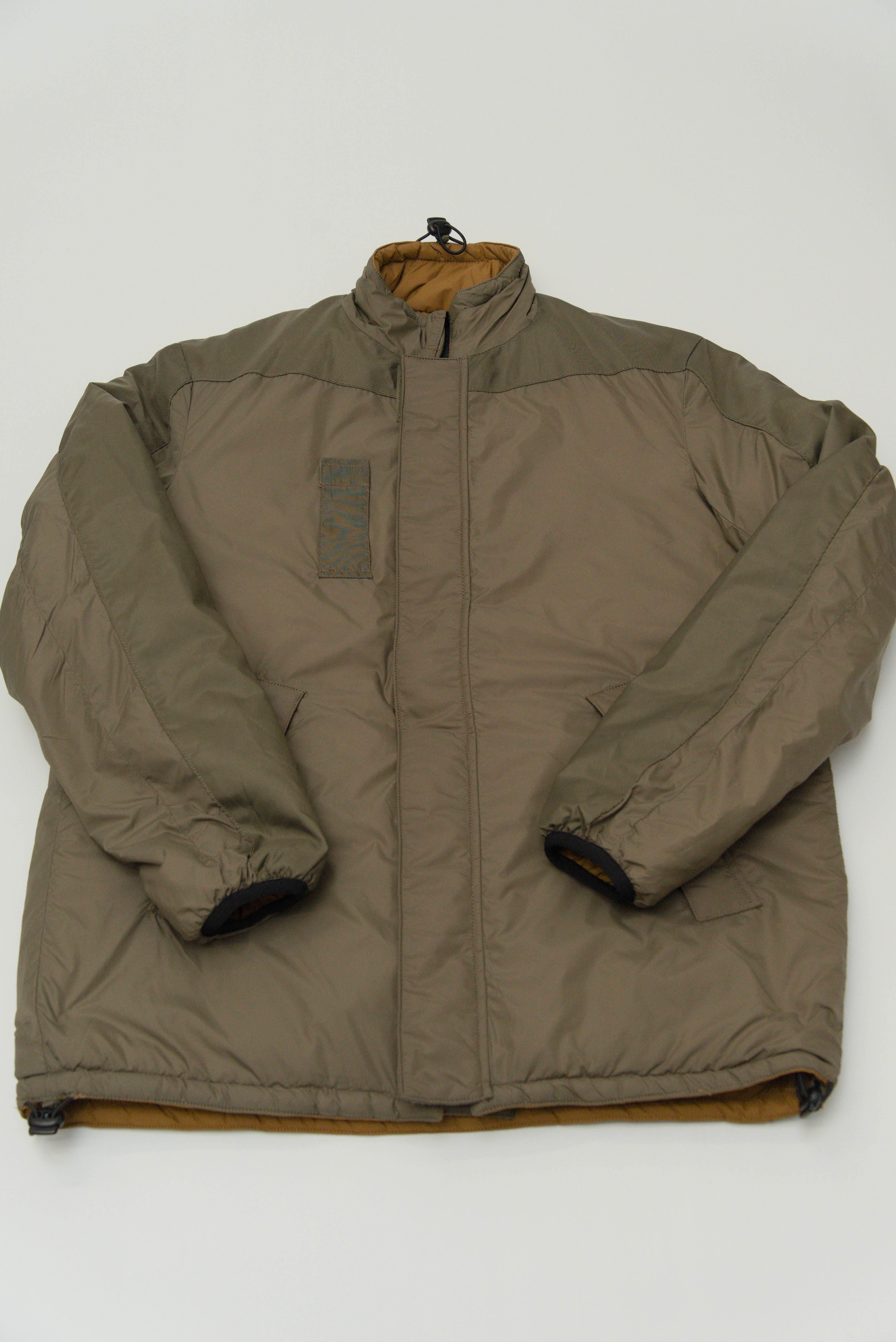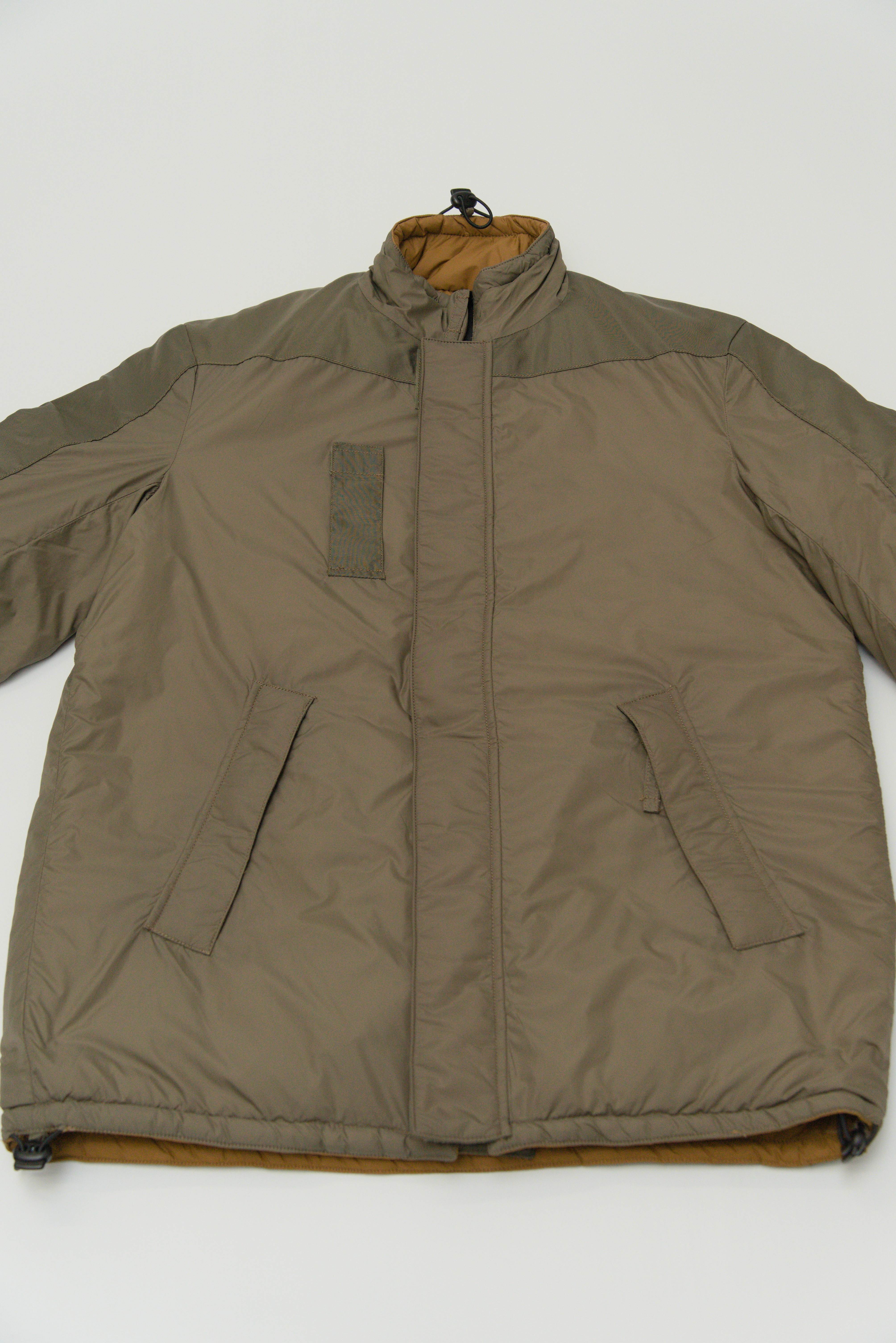 中綿には、イギリスのスナグパック社が開発したSOFTIEという素材が使われ、軽量でありながらダウン以上の高い保温性があり、イギリス軍のPCS、アメリカ軍のECWCSに並ぶ暖かさ。