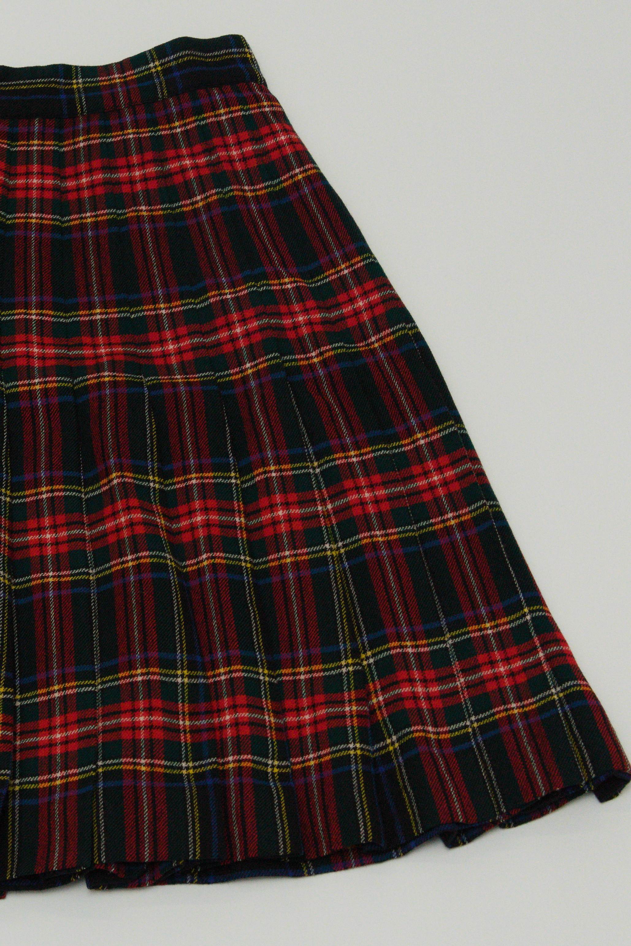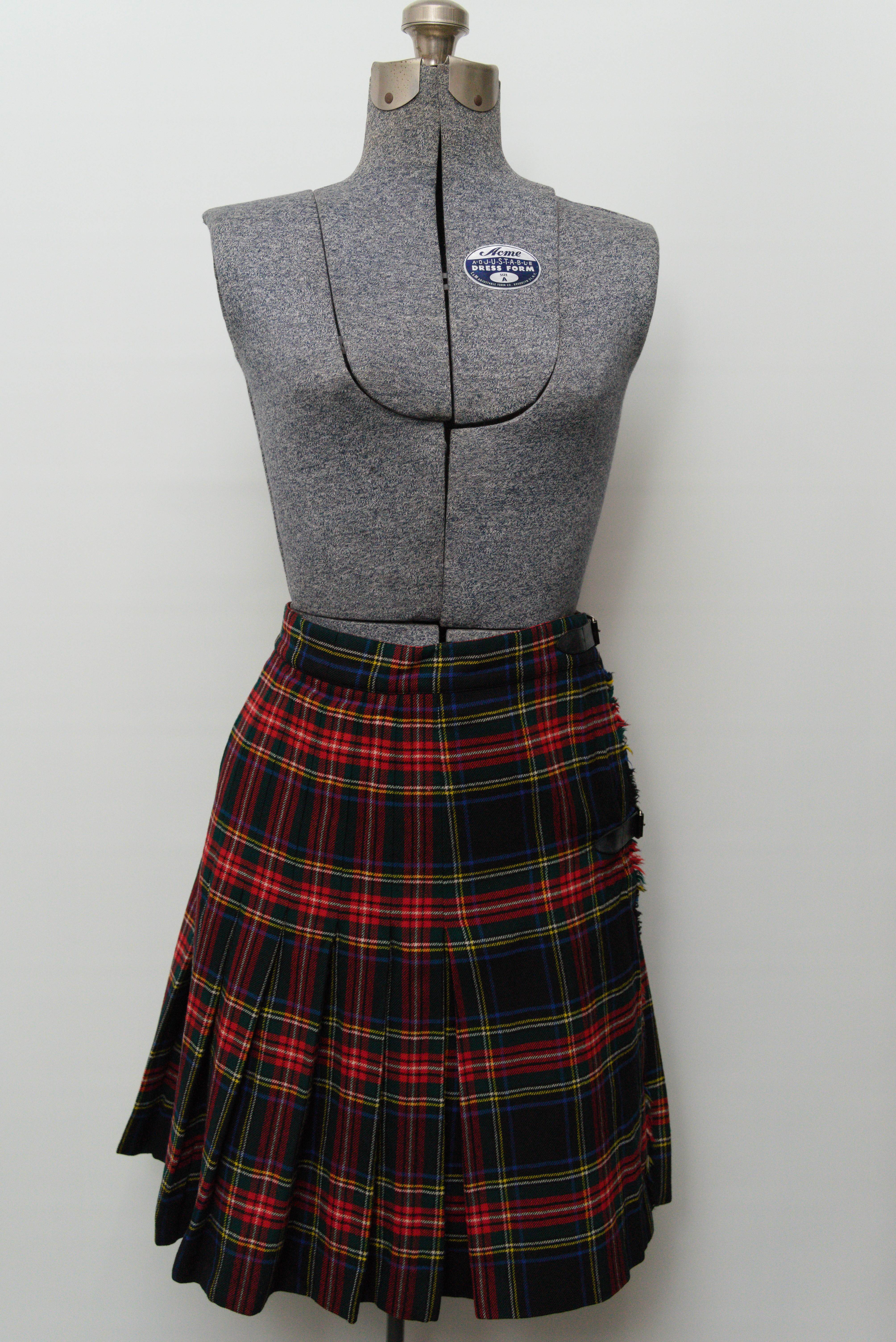スコットランドで織られたPeter Mac Arthur社製のタータン柄の生地を使い、革製のバックル留め具など伝統的なキルトスカートのスタイルで作っれた一着です。