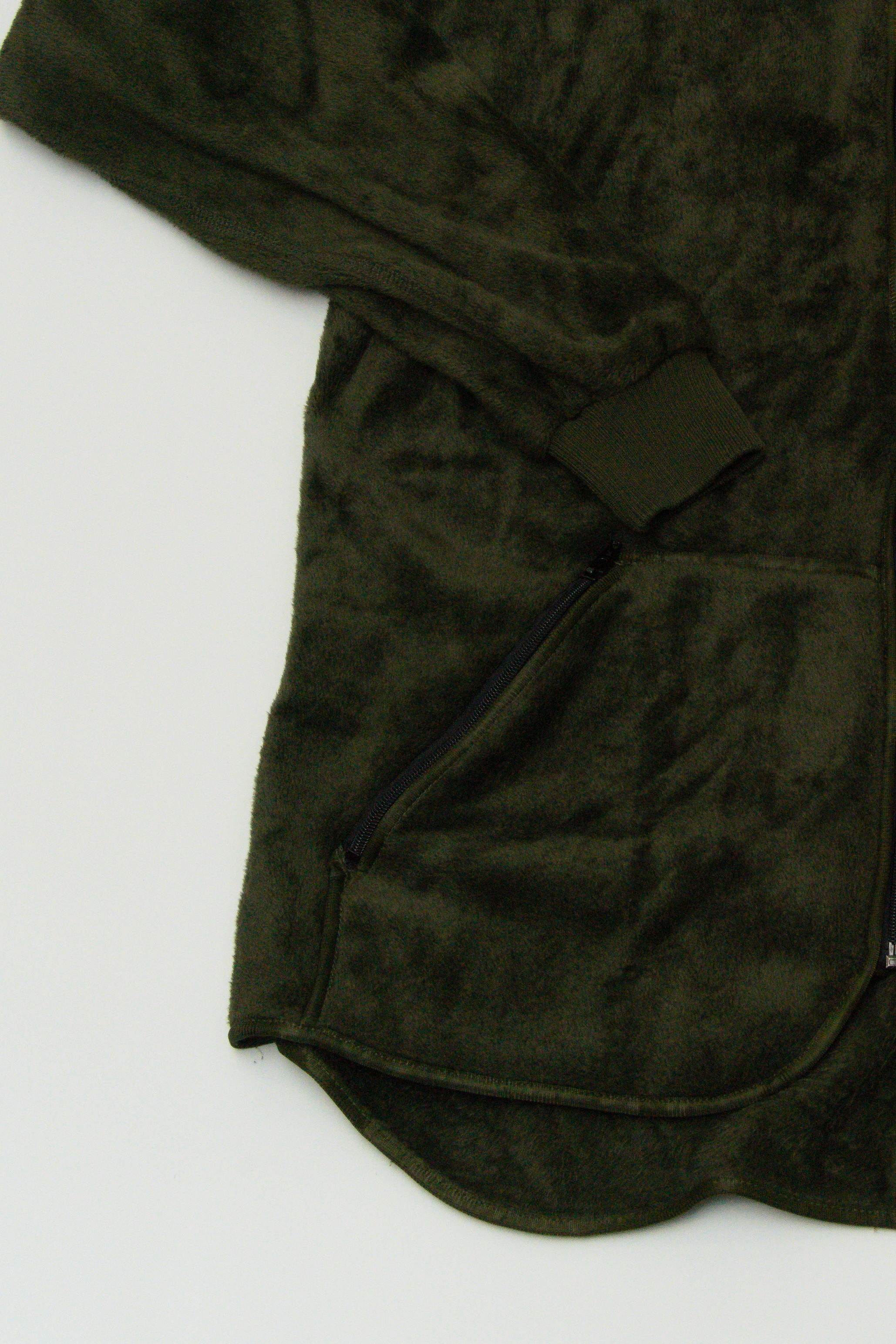 ライナージャケットながら、大き目のカンガルーポケットや袖口のサムホールなど、単体での着用も考えられたジャケットで、内側は毛足の長い裏起毛のような質感なので非常に暖かく保温性の高い着心地の一枚。