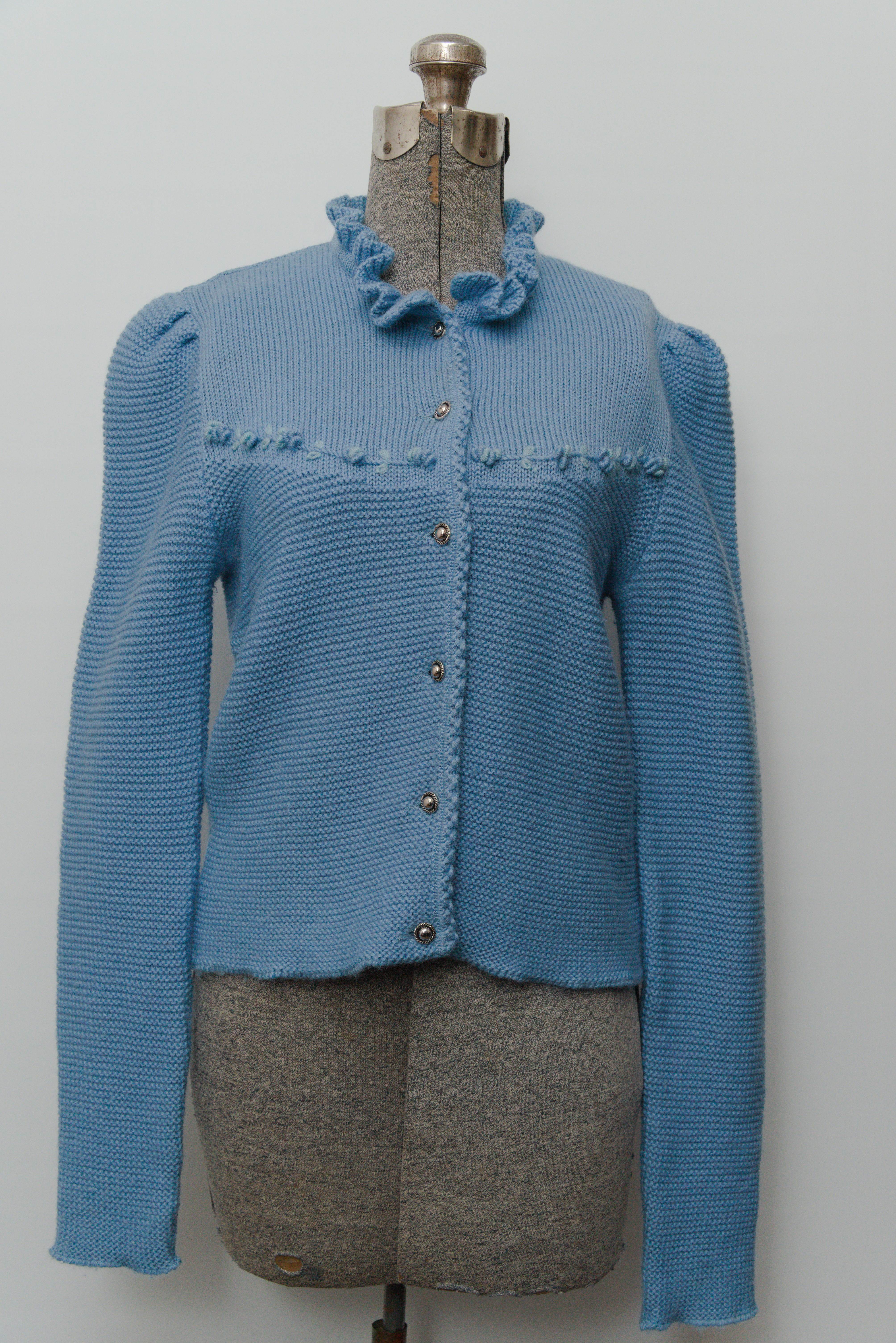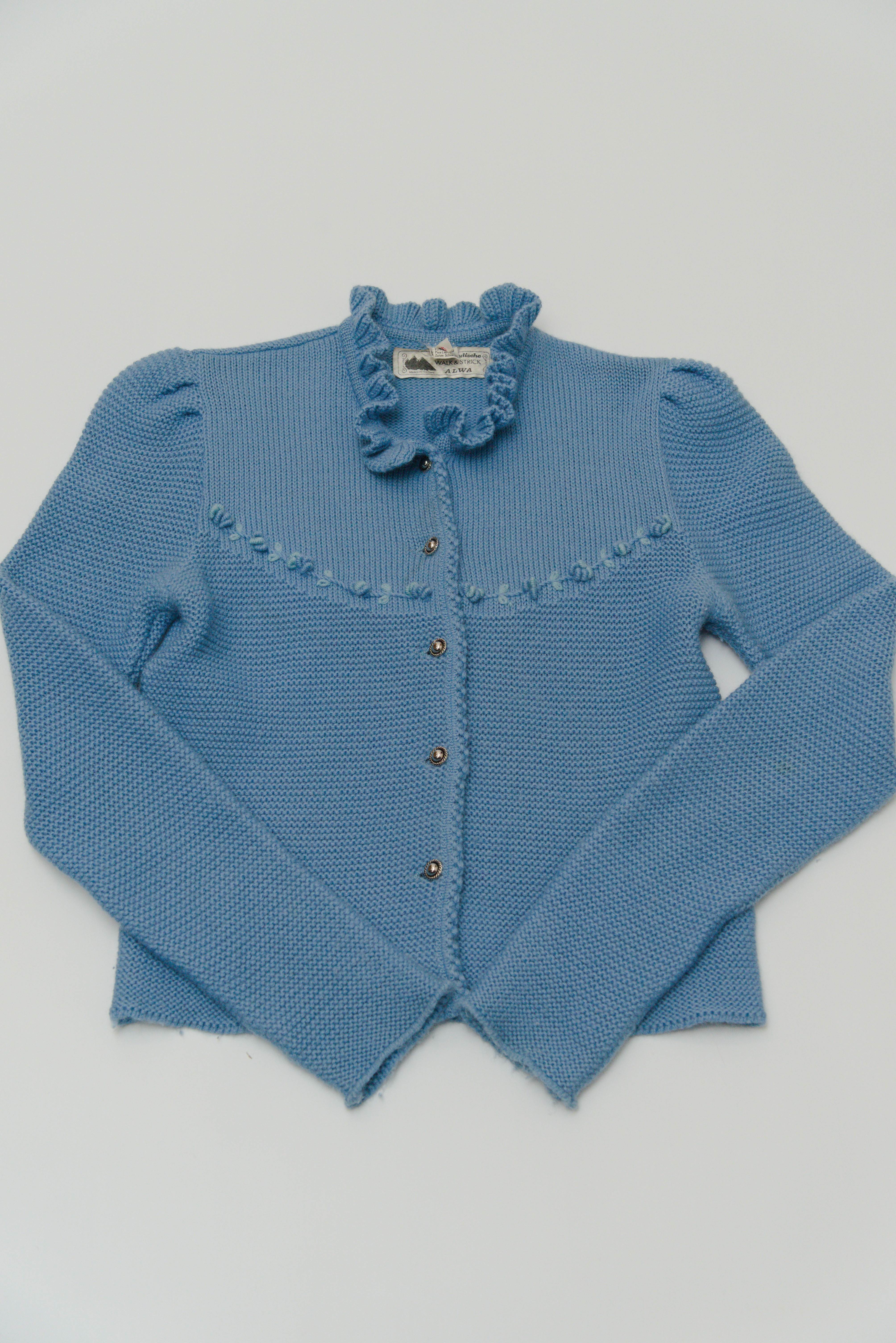 商品説明:80's頃の西ドイツ ALWA社製 フリルカラー チロリアン カーディガンになります。