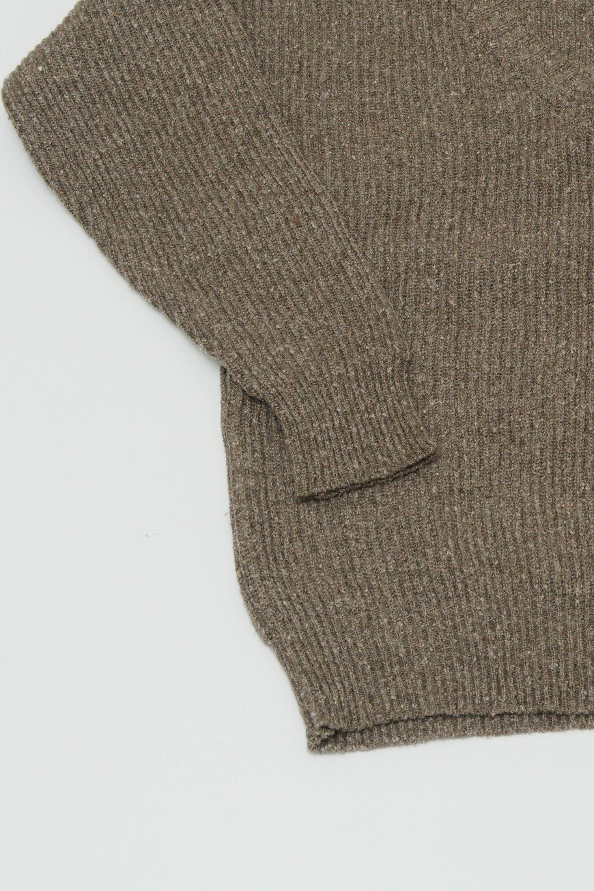 ゴリッとしたネップウールで編まれており元々インナー的な使い方のセーターの為、かなりタイト目に編まれていますが、ニット製品になりますので伸縮性はあります。