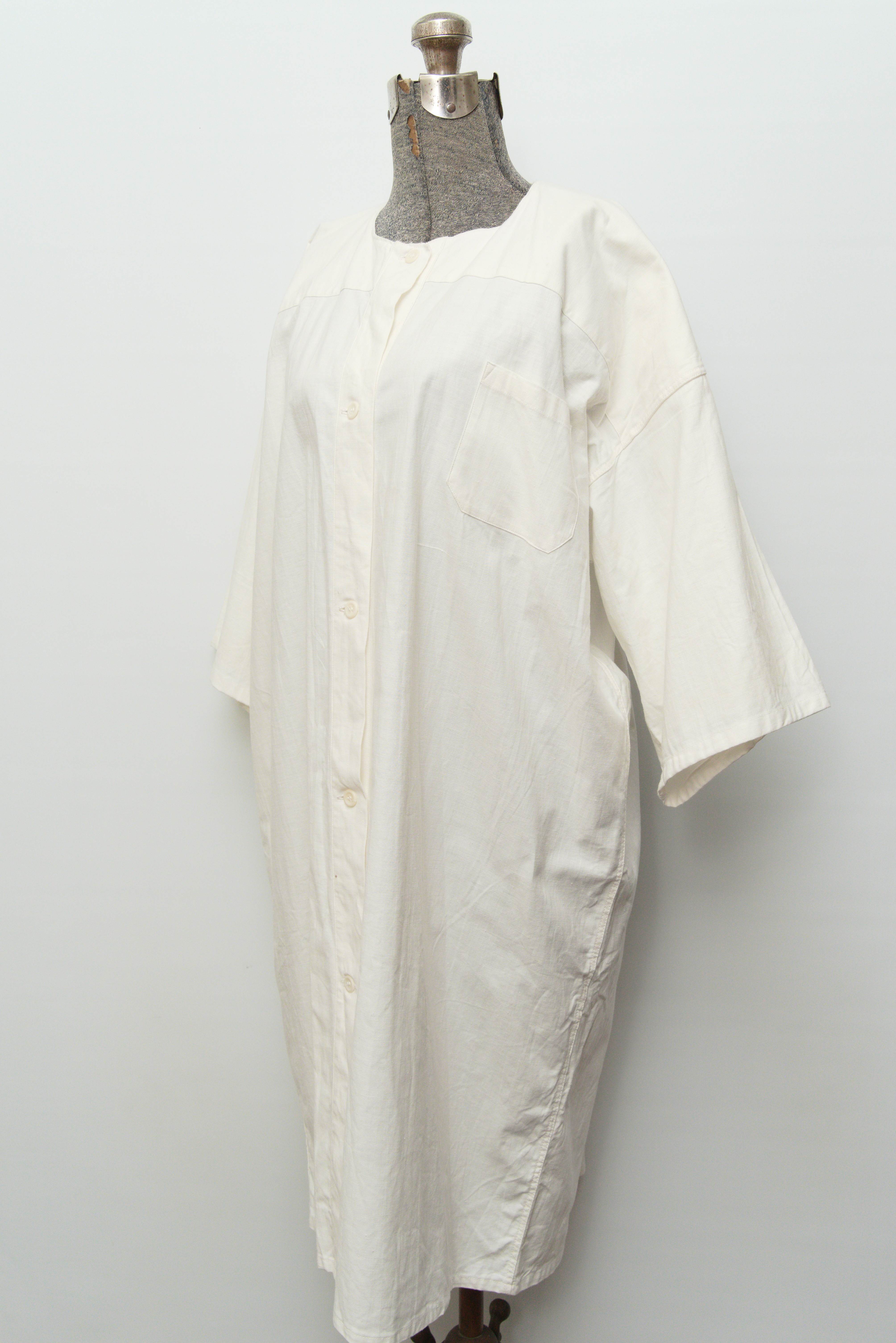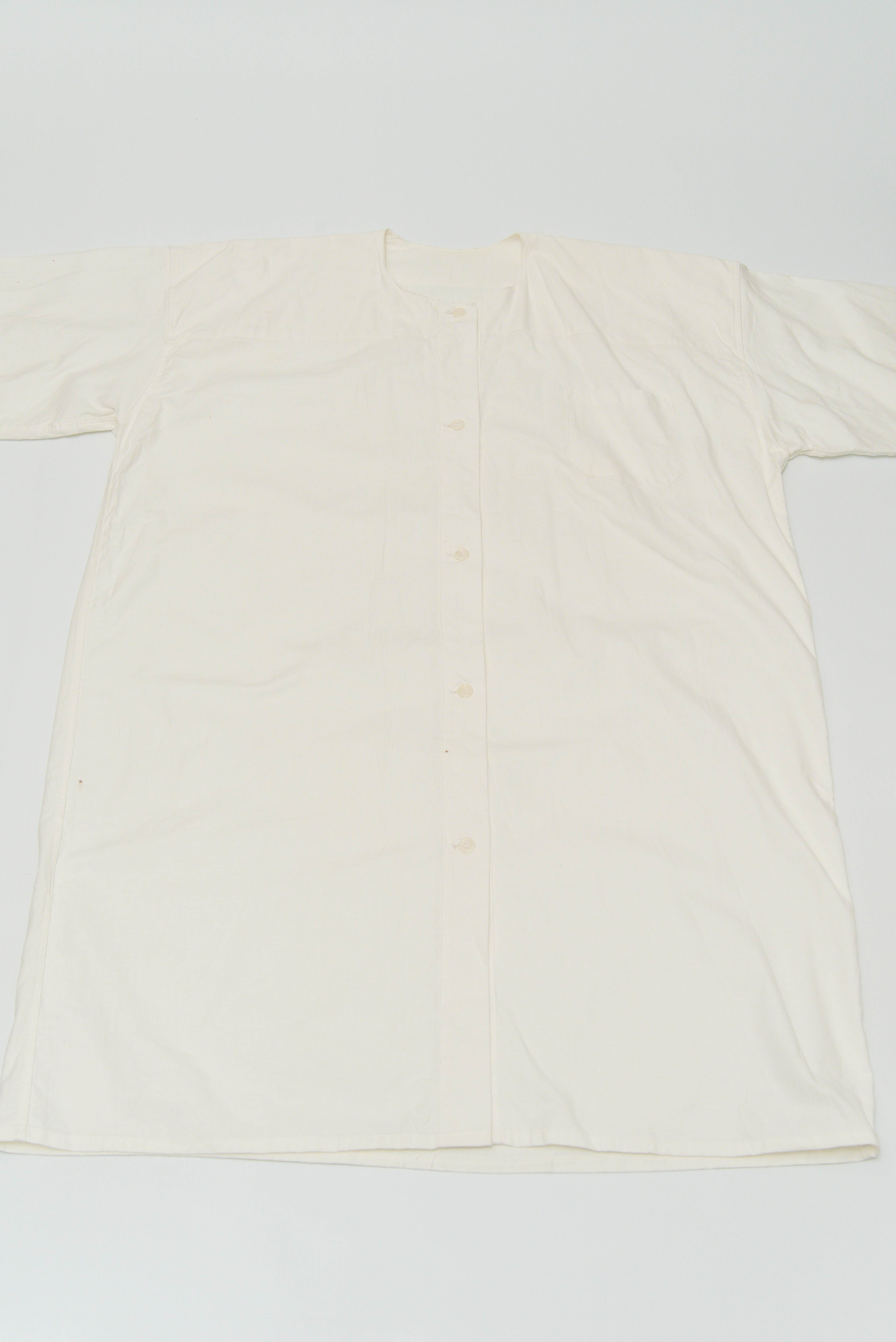 スウェーデン軍のホスピタル・サージカル系ではM-39のエプロンや紐付きのコート等が有名ですがこちらは珍しいラインドネックのボタン止めタイプ。ポケットは胸ポケット一つ。