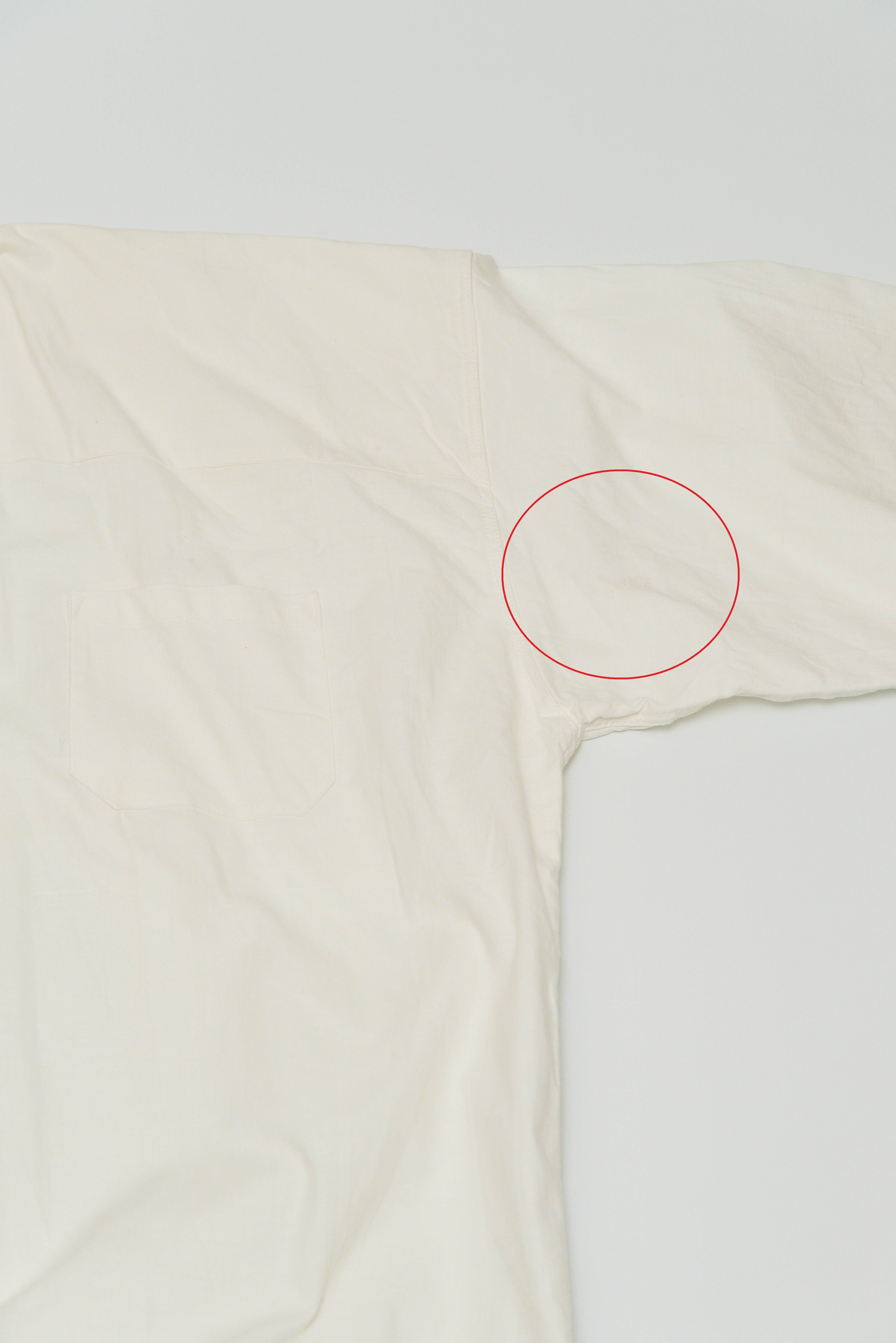 小さなシミが前後に数か所、右肩後ろ首付近に補修跡あり。