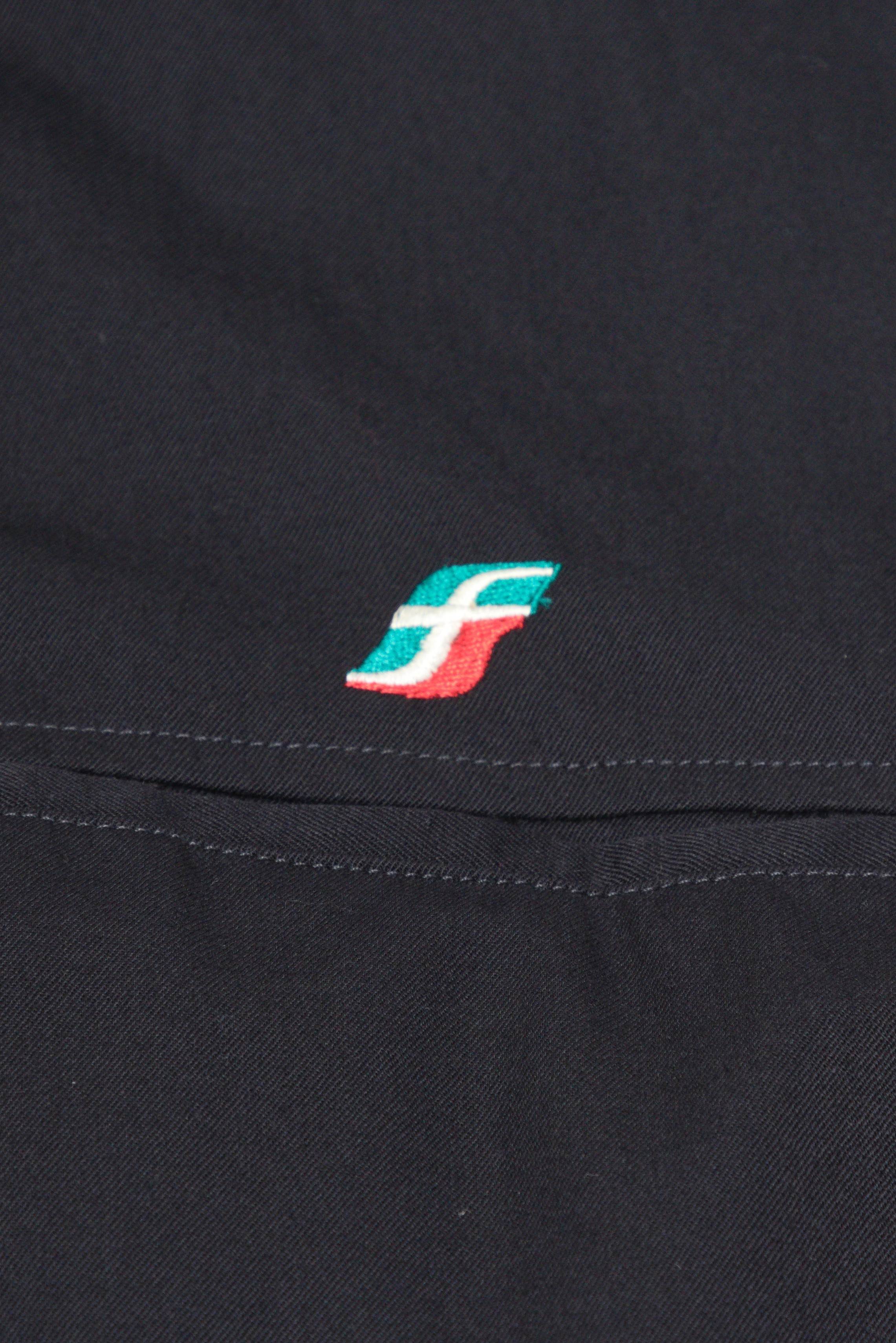 日本のJR同様にイタリアの鉄道も民営化されており同じグループ内にはバス会社(BUSITALIA)もあります。ロゴマークは共通のものを使用しているらしく左胸にはトリコロールカラーの企業ロゴが刺繍されております。前たての裏がレッドな所も特徴の一つ。ポケットは外に4つ。内側に2つ(ペンポケット1つ)胸のポケットはマジックテープ仕様。