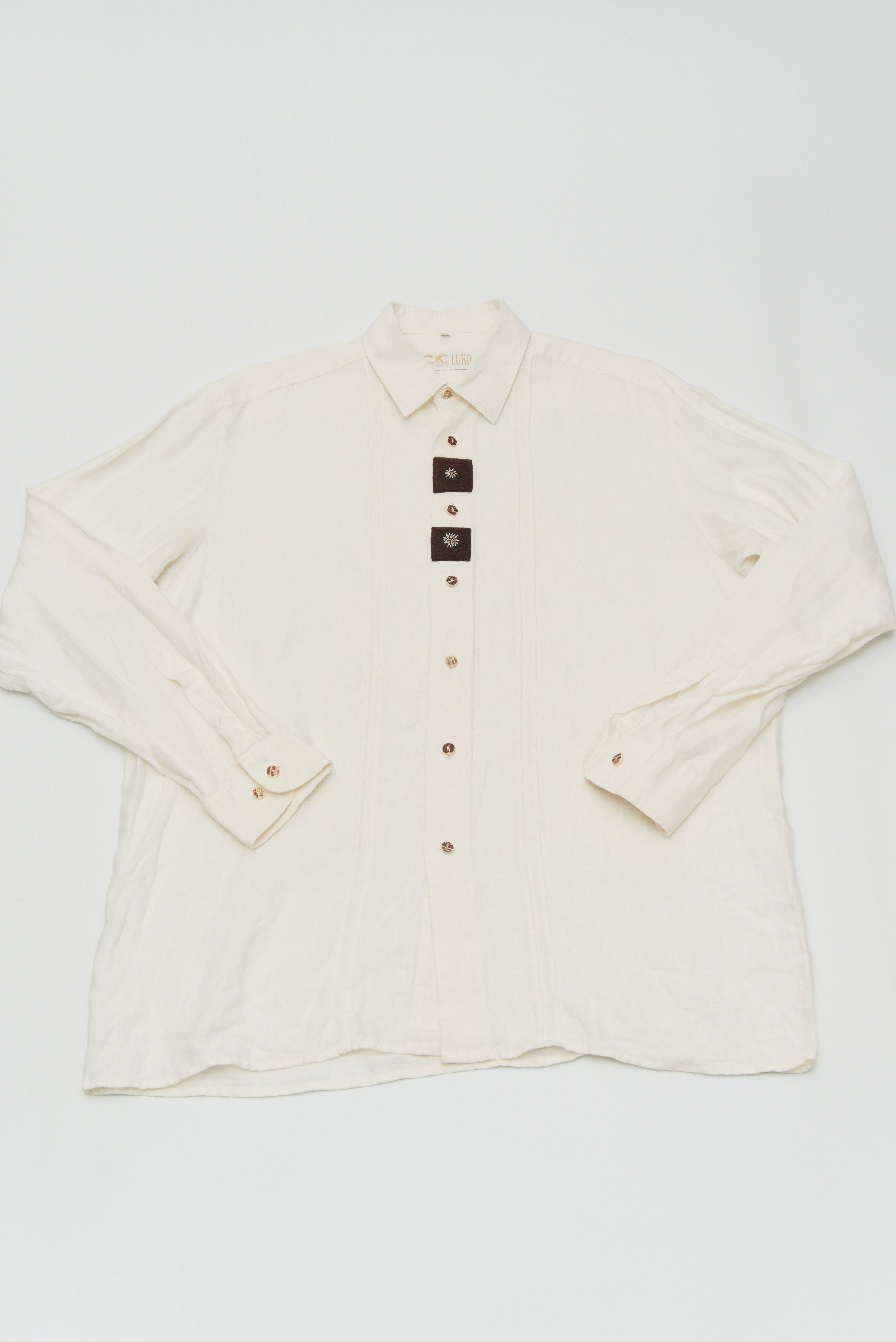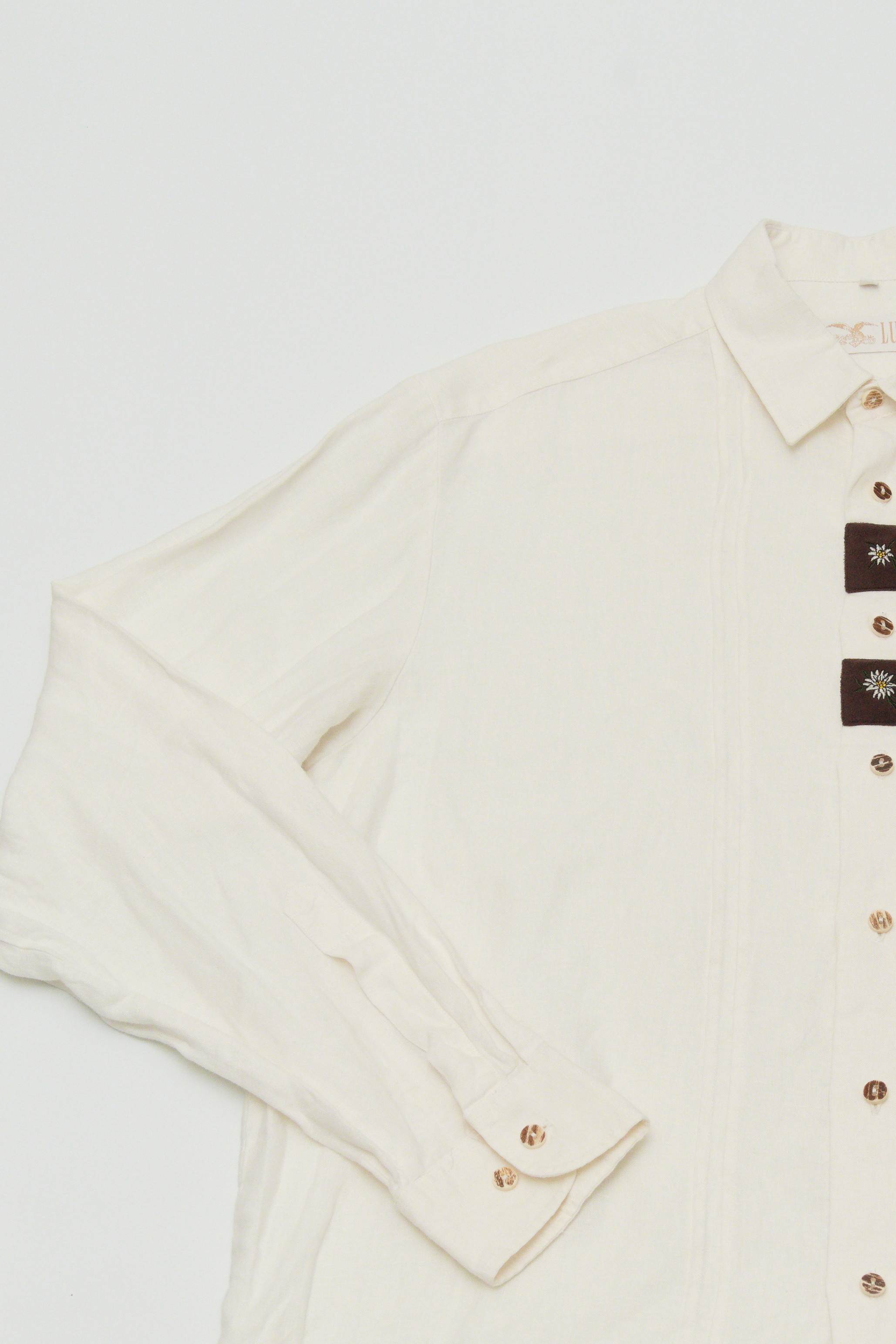 胸元の入ったオーストリアの国花エーデルワイスの花の刺繍が特徴的なシャツです。