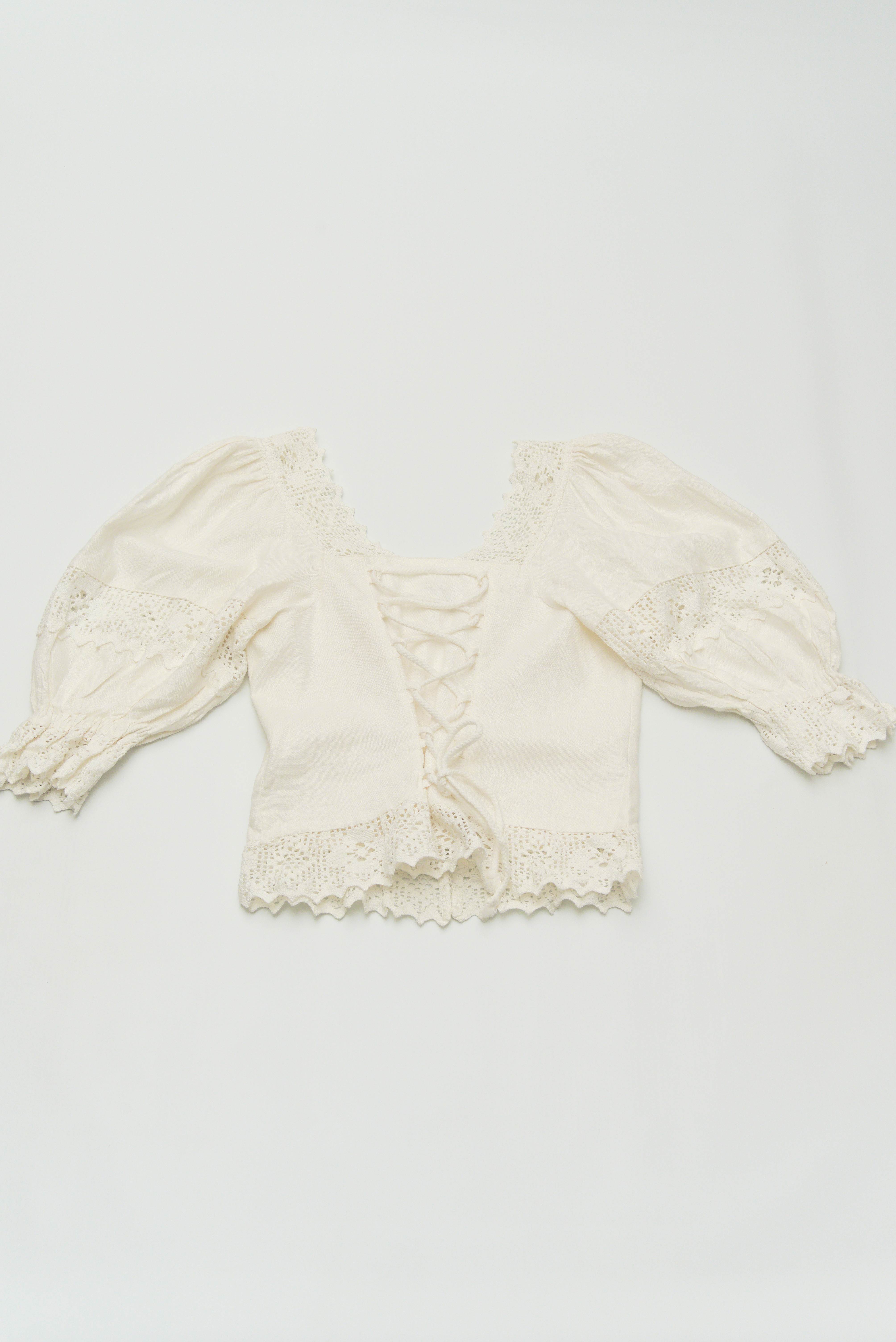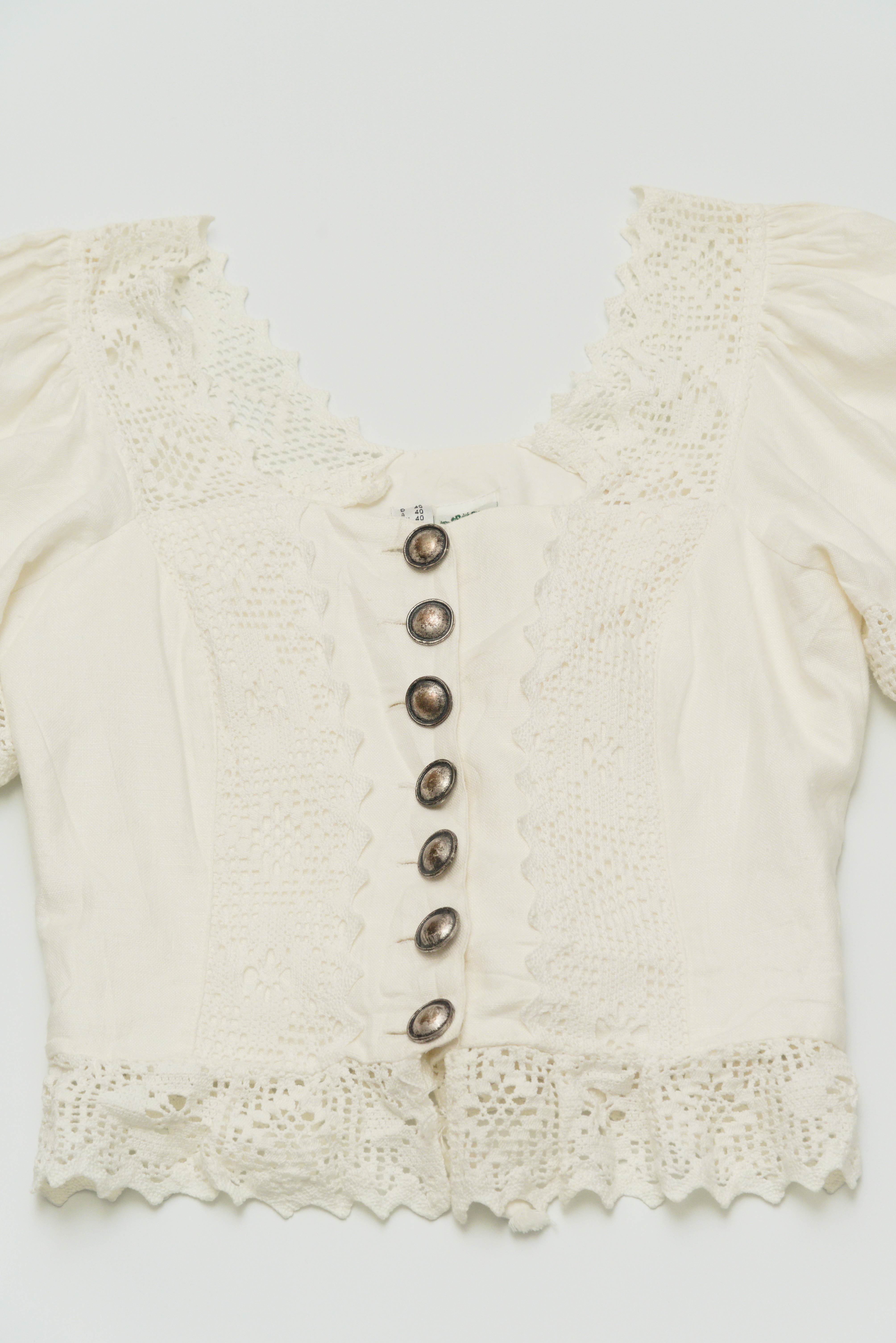 商品説明:オーストリア Hammerschmid社製のクロシェレース使いチロリアン コルセットブラウスになります。