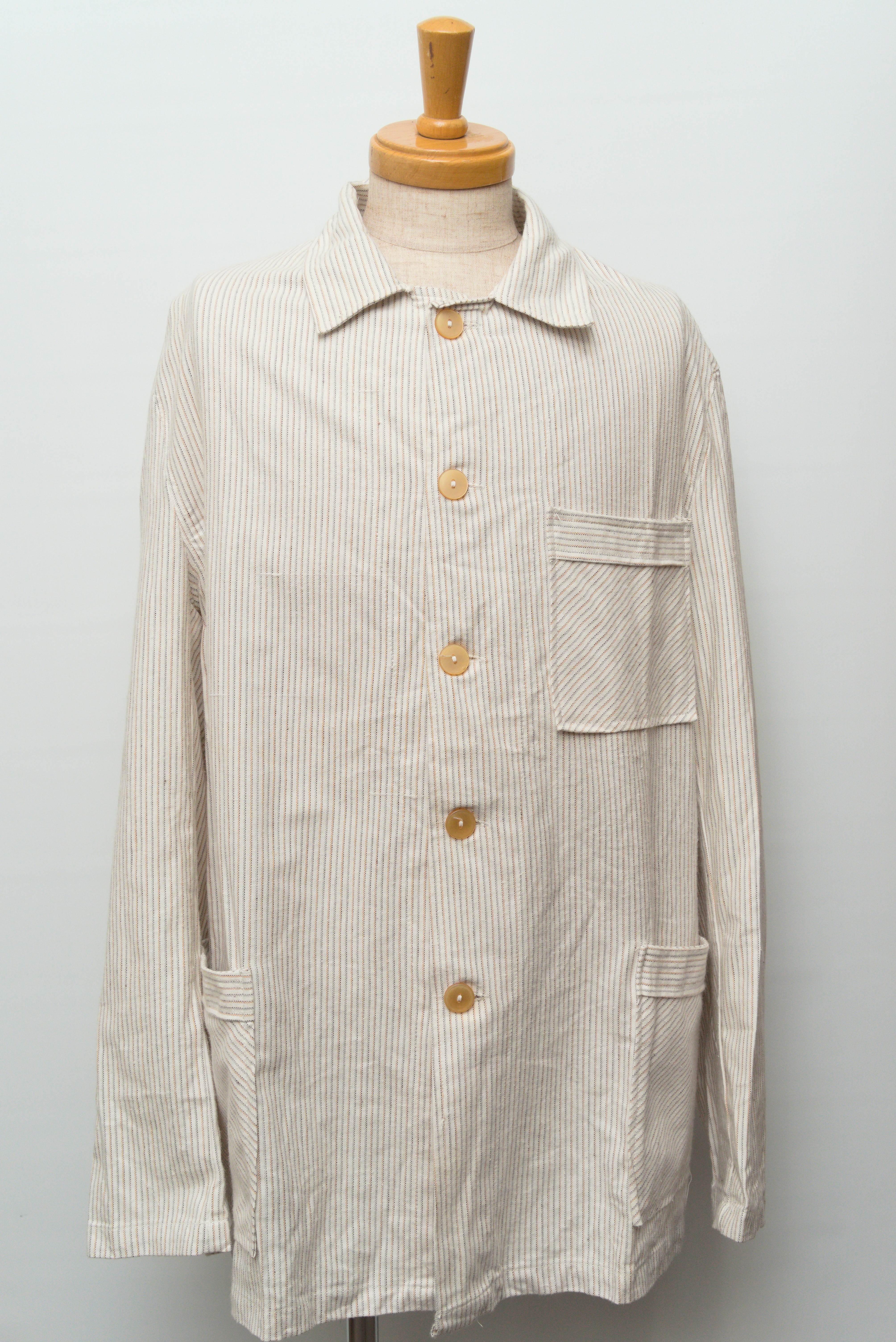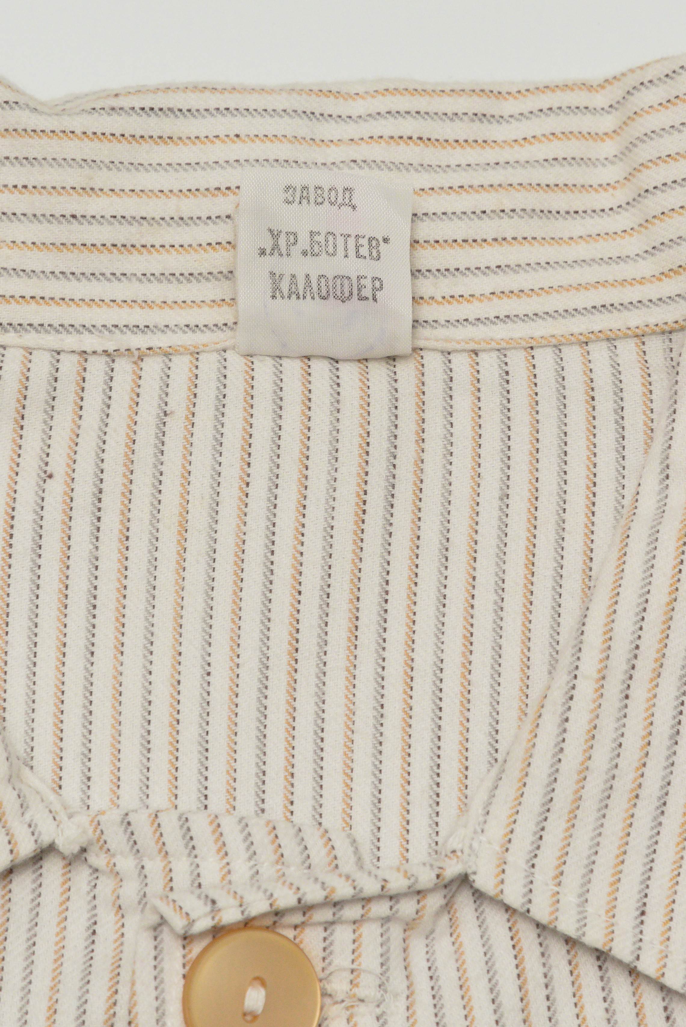 詳細ははっきりしませんが、タグやデザインから見てブルガリアの官給品。生地が柔らかなコットン素材で出来ているので作業用のジャケットと言うよりホスピタルジャケットやパジャマ的なものと思われます。