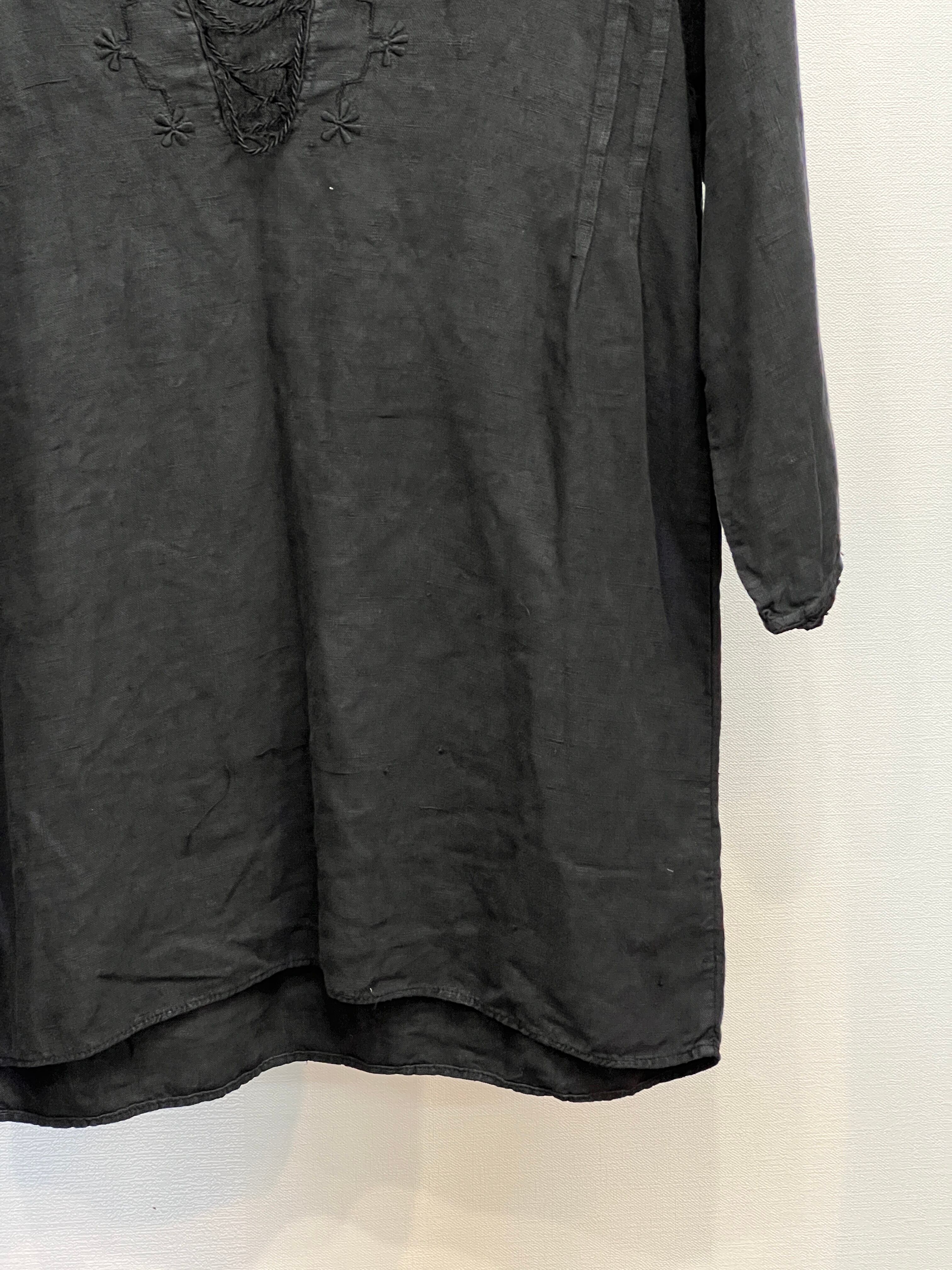 胸元が大きく開いたシルエットで、襟ぐりが大きめの七分丈のブラウスになります。