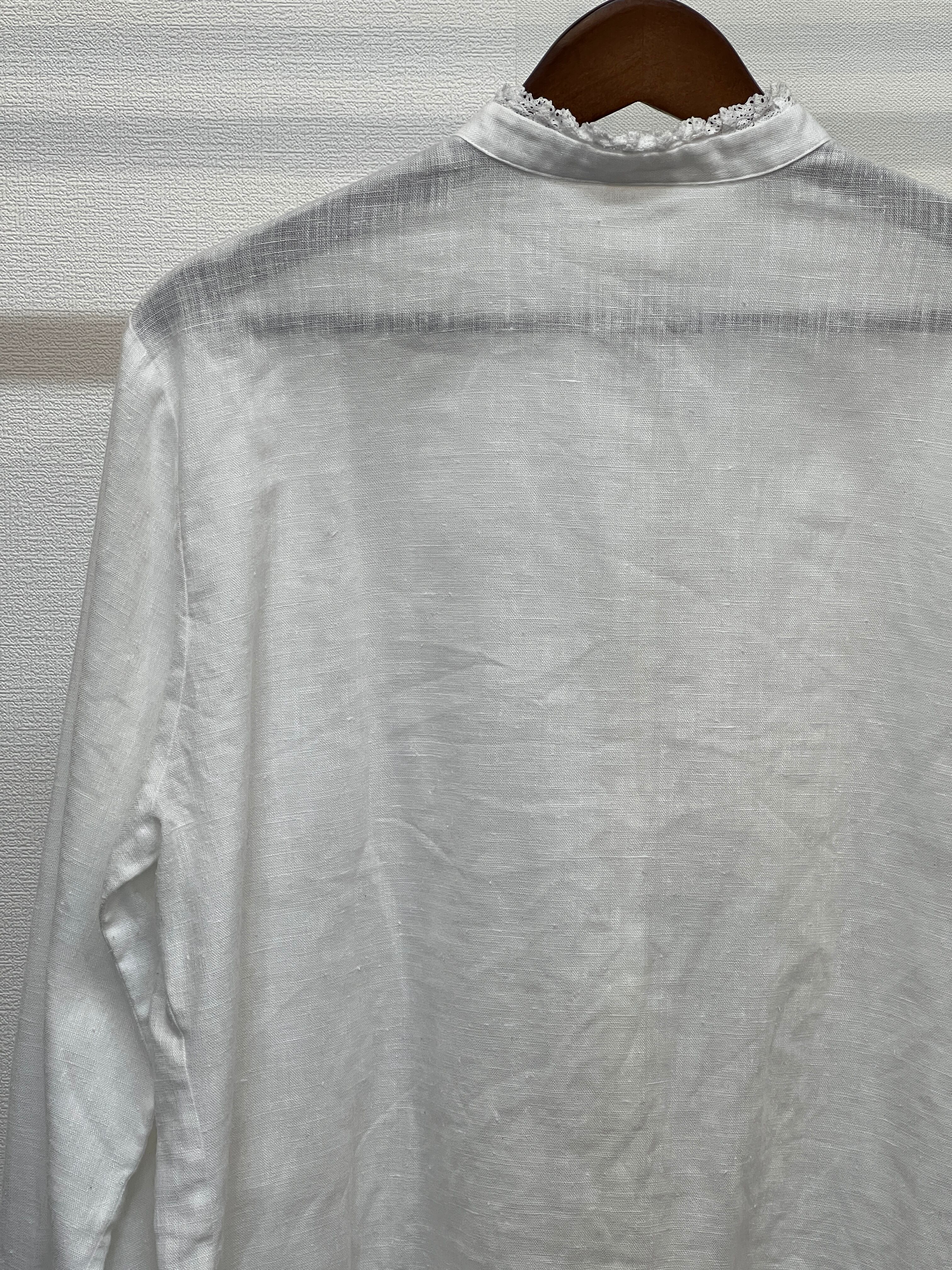 商品説明:スタンドカラーで襟元と袖口のレースがとてもかわいいブラウスです。
