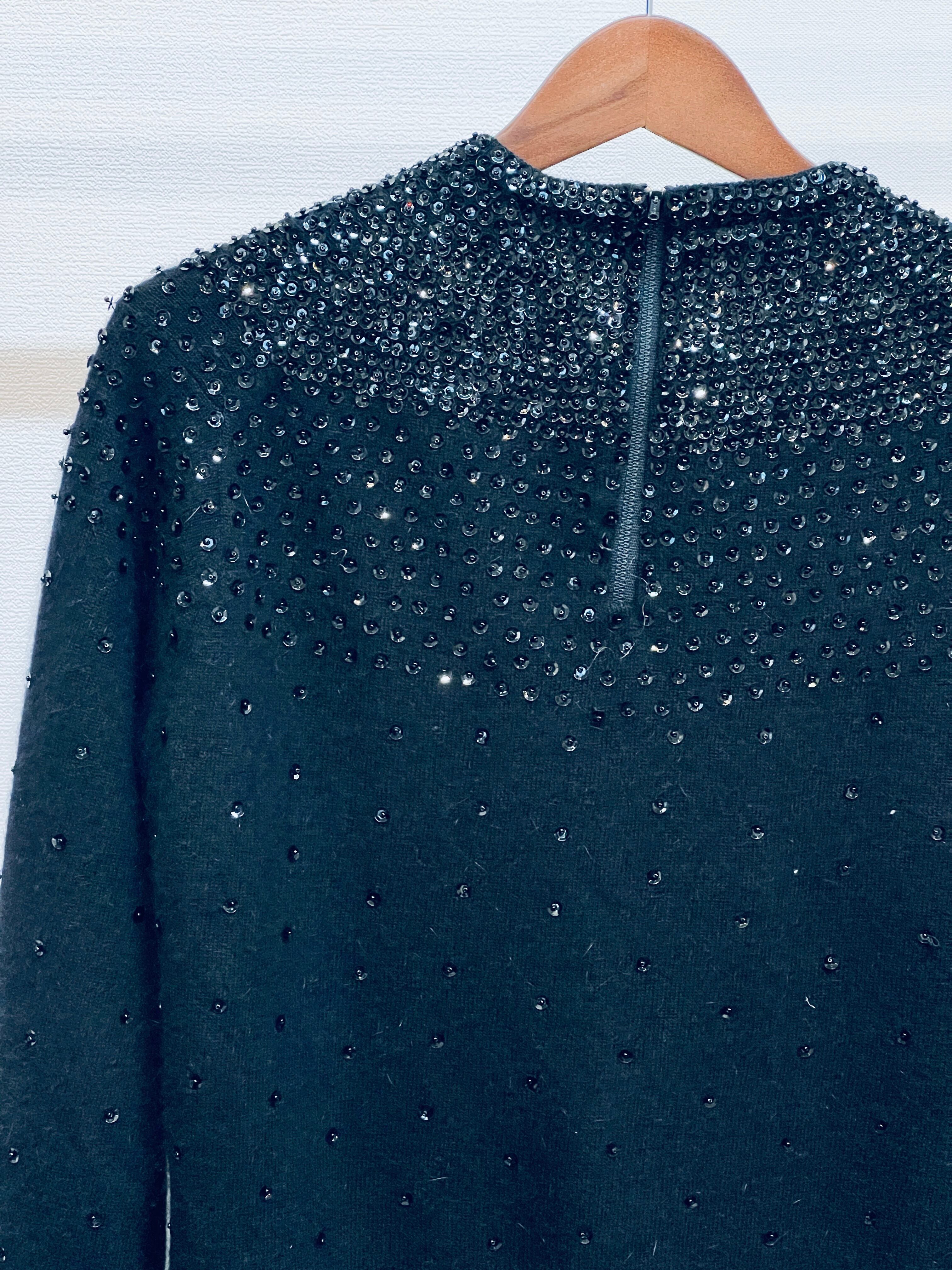 商品説明:スパンコールが散りばめられた裏地付きのウール/アンゴラ混ニットになります。
