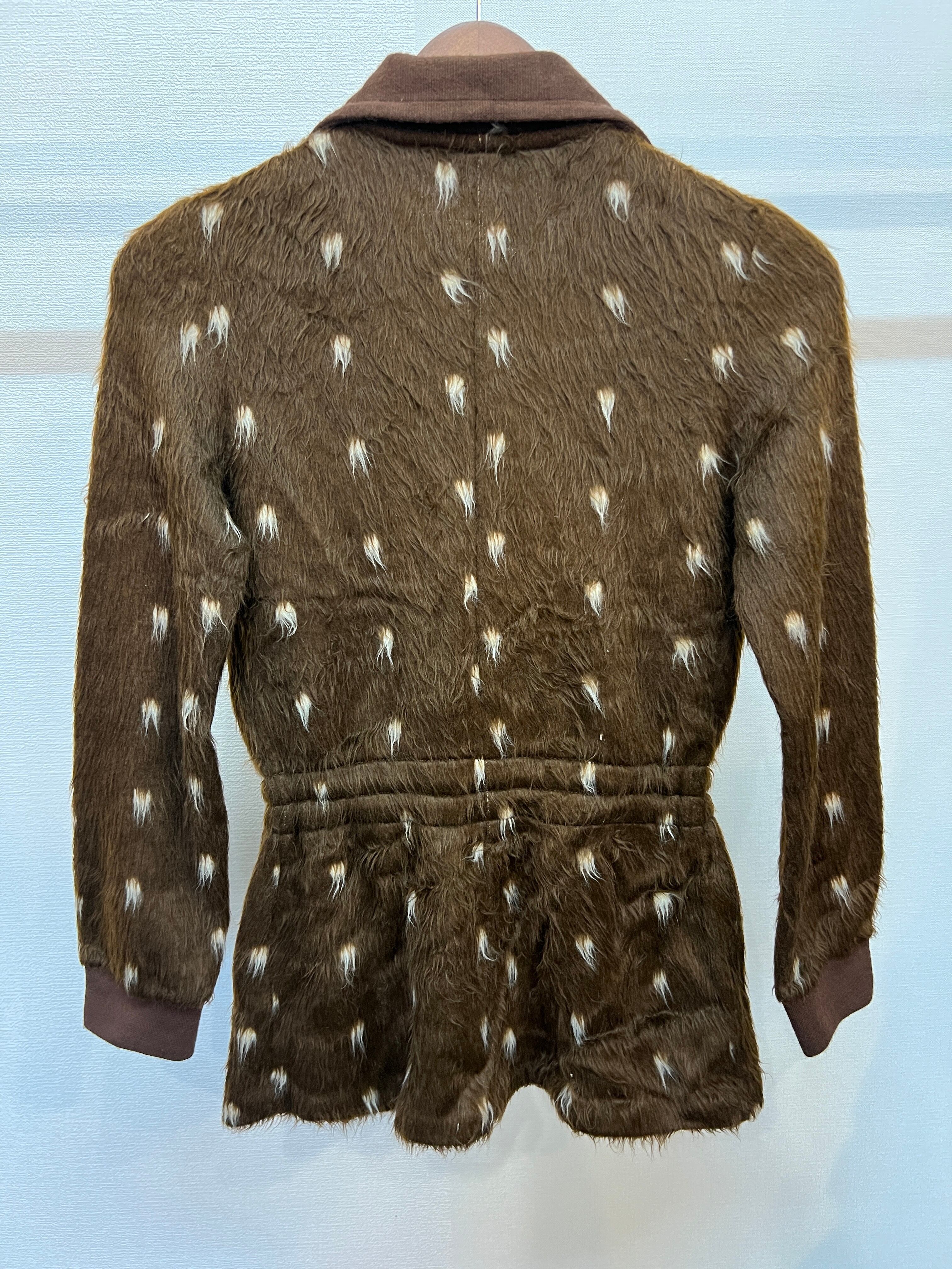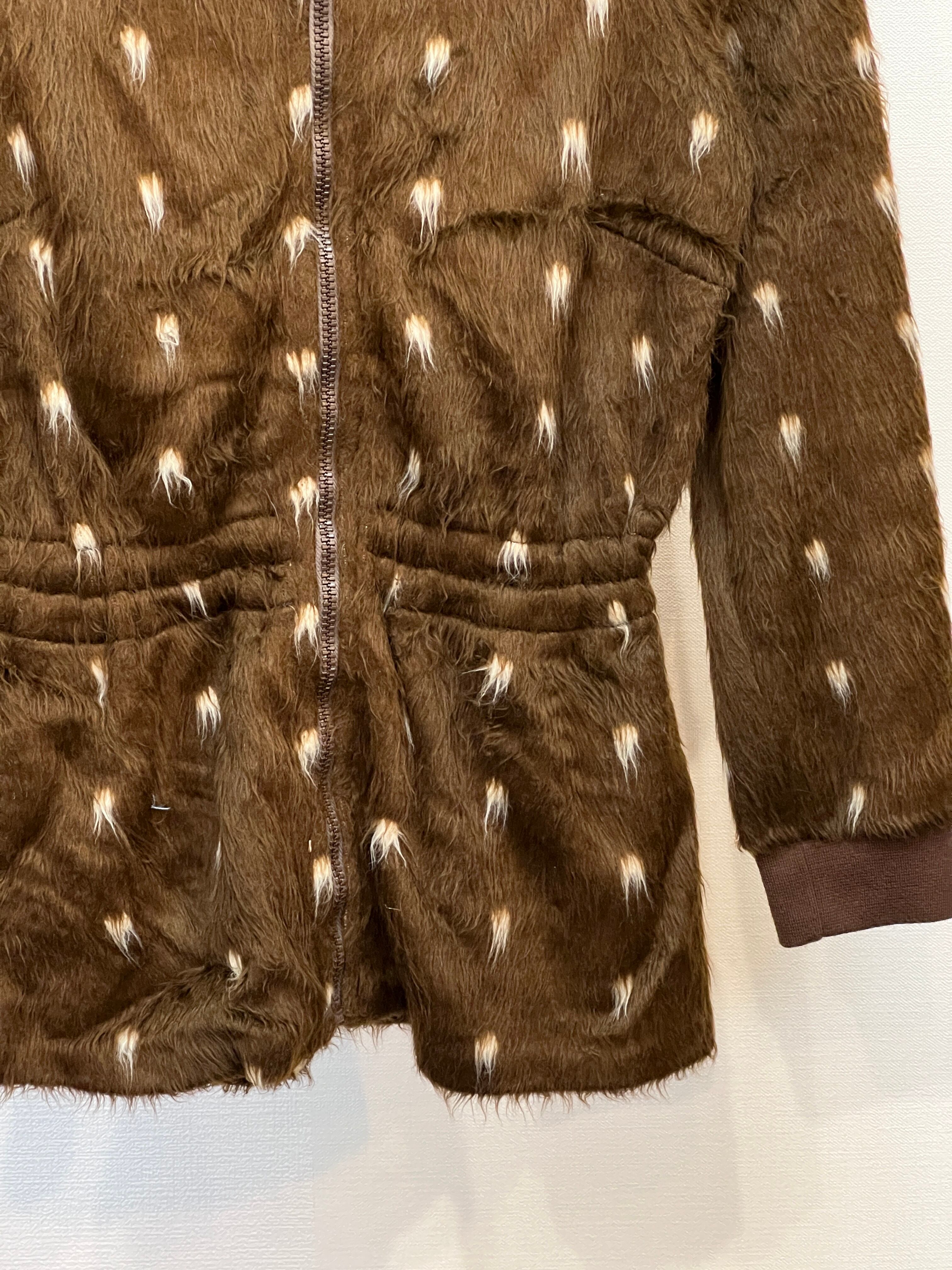 商品説明:バンビ柄のフェイクファーであしらわれたコンパクトなジップドジケットです。