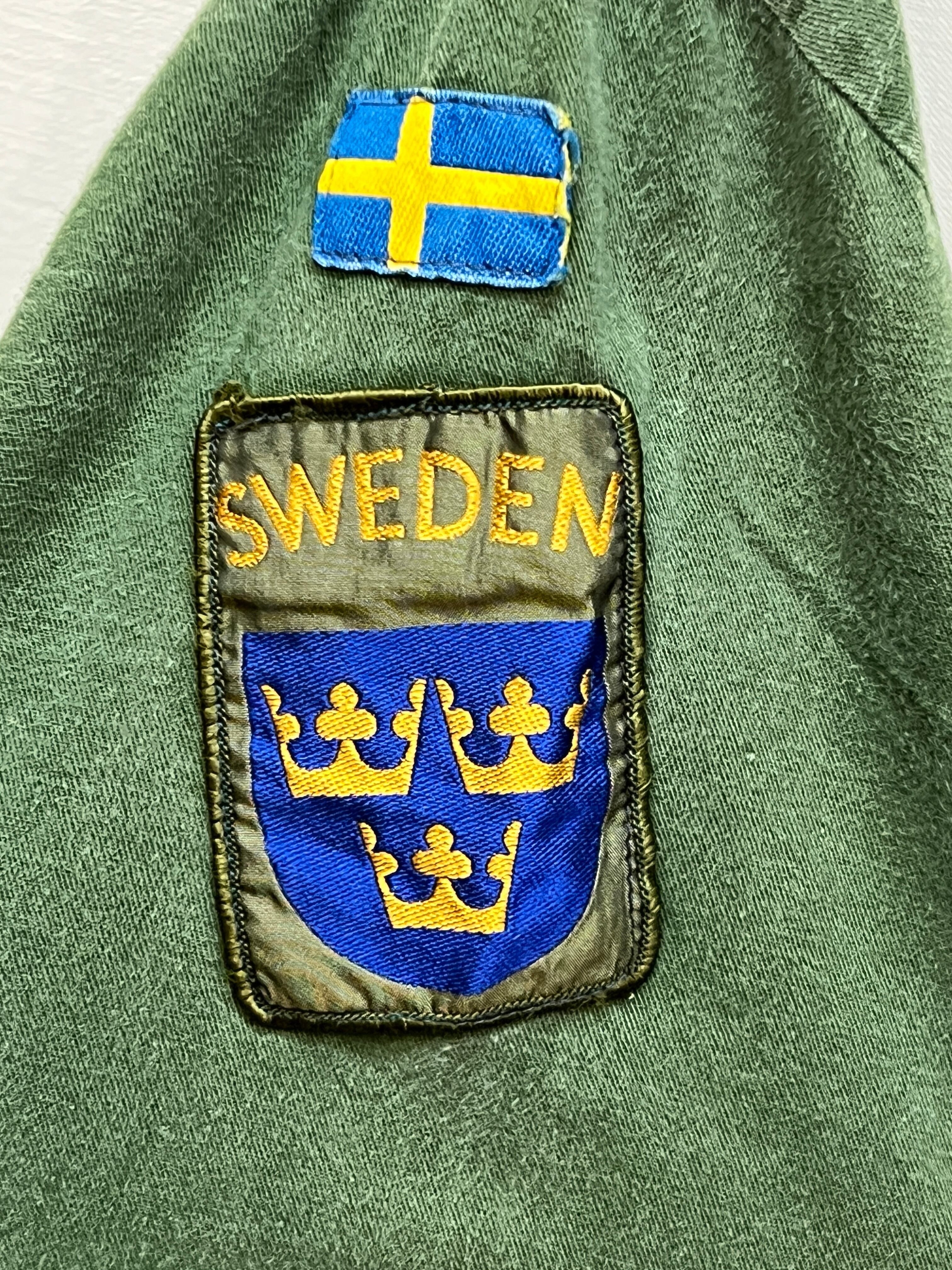 スウェーデン軍と言えばのオリーブ色が特徴で非常に珍しいパッチ付き。
