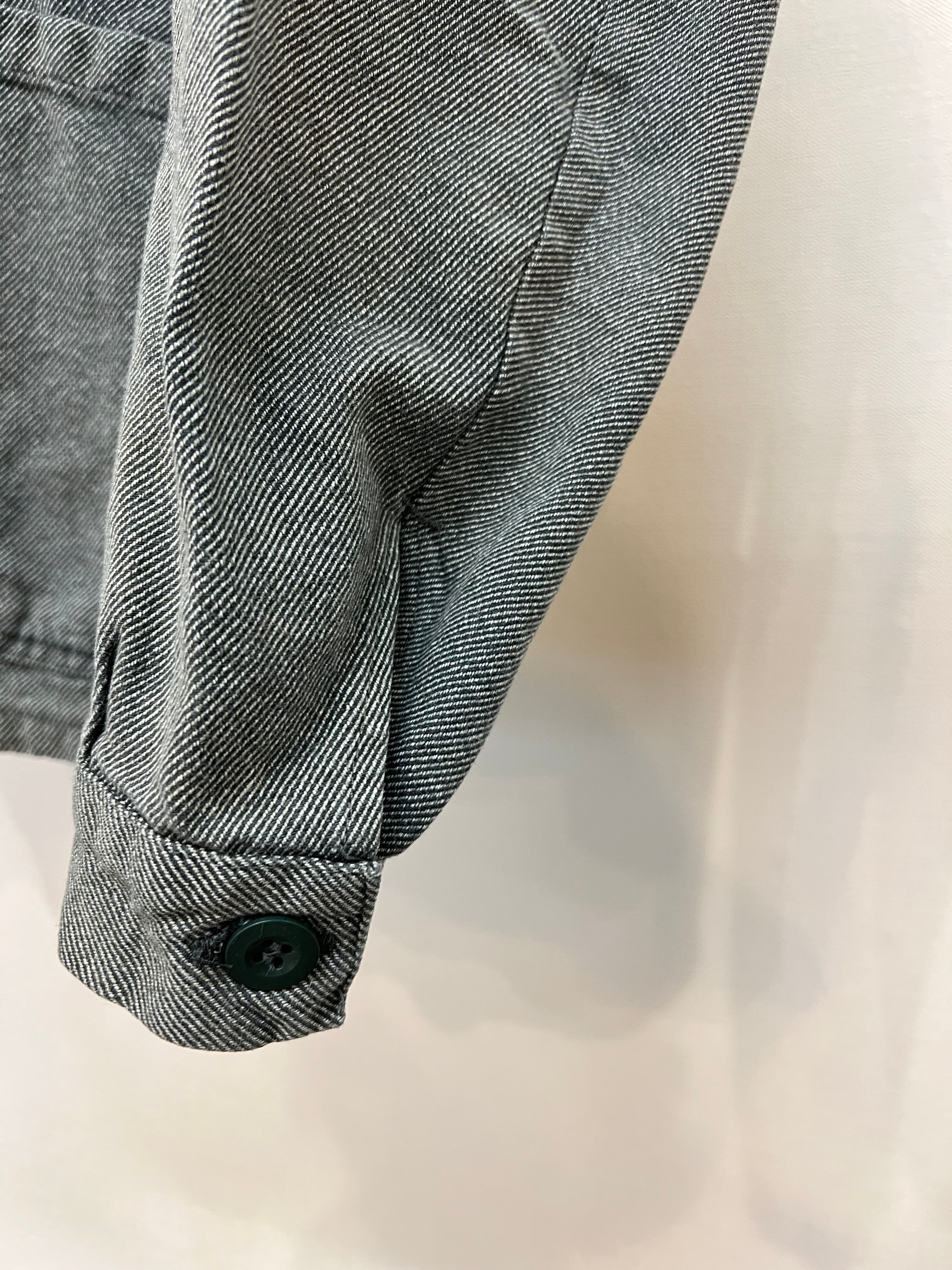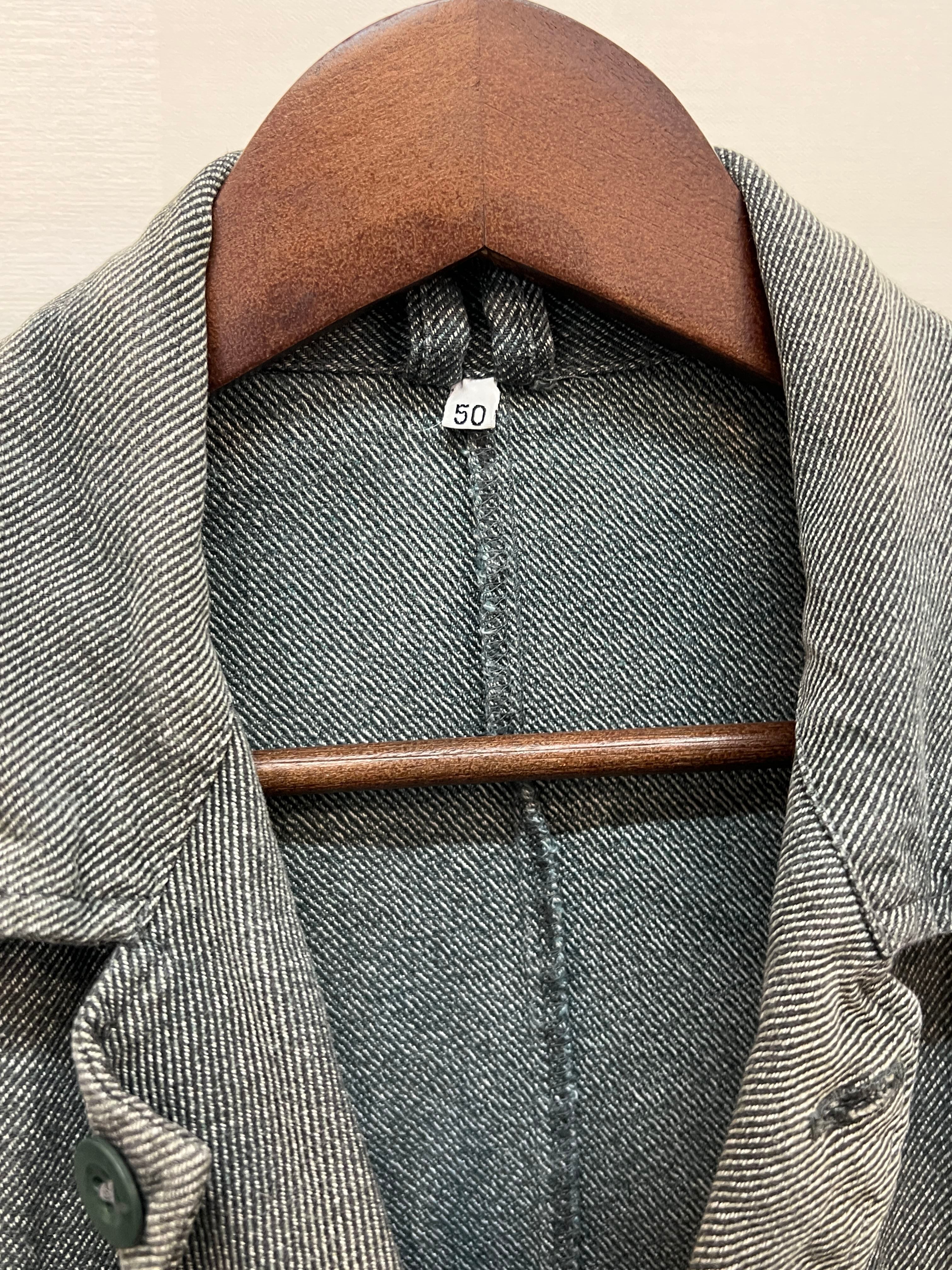 スイス軍のデニムジャケットのような風合いのグリーンデニムワークジャケット。