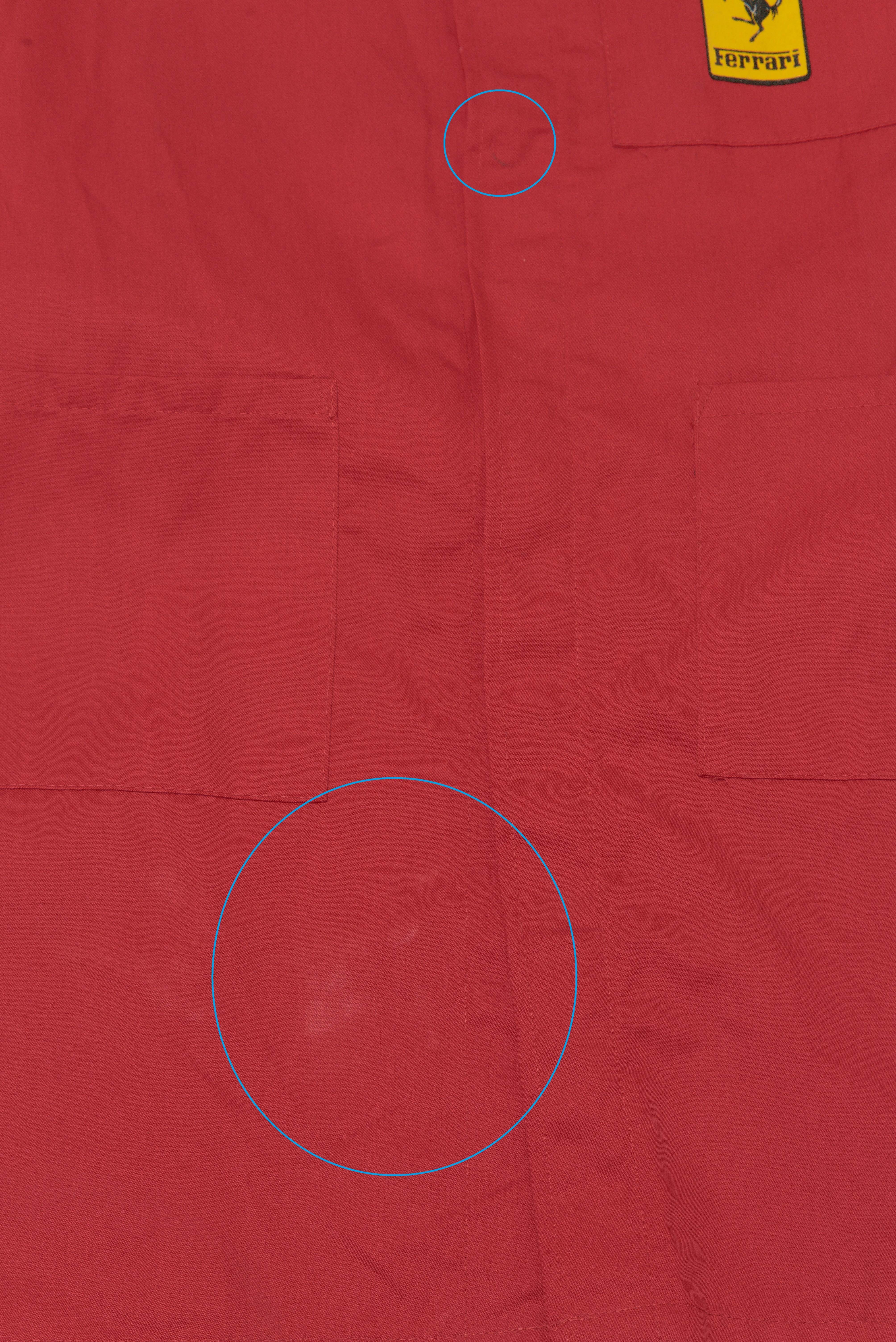 胸ポケットと背中にFerrariのロゴマークがフェルトを貼り付けたような「フロッキープリント」でプリントされています。