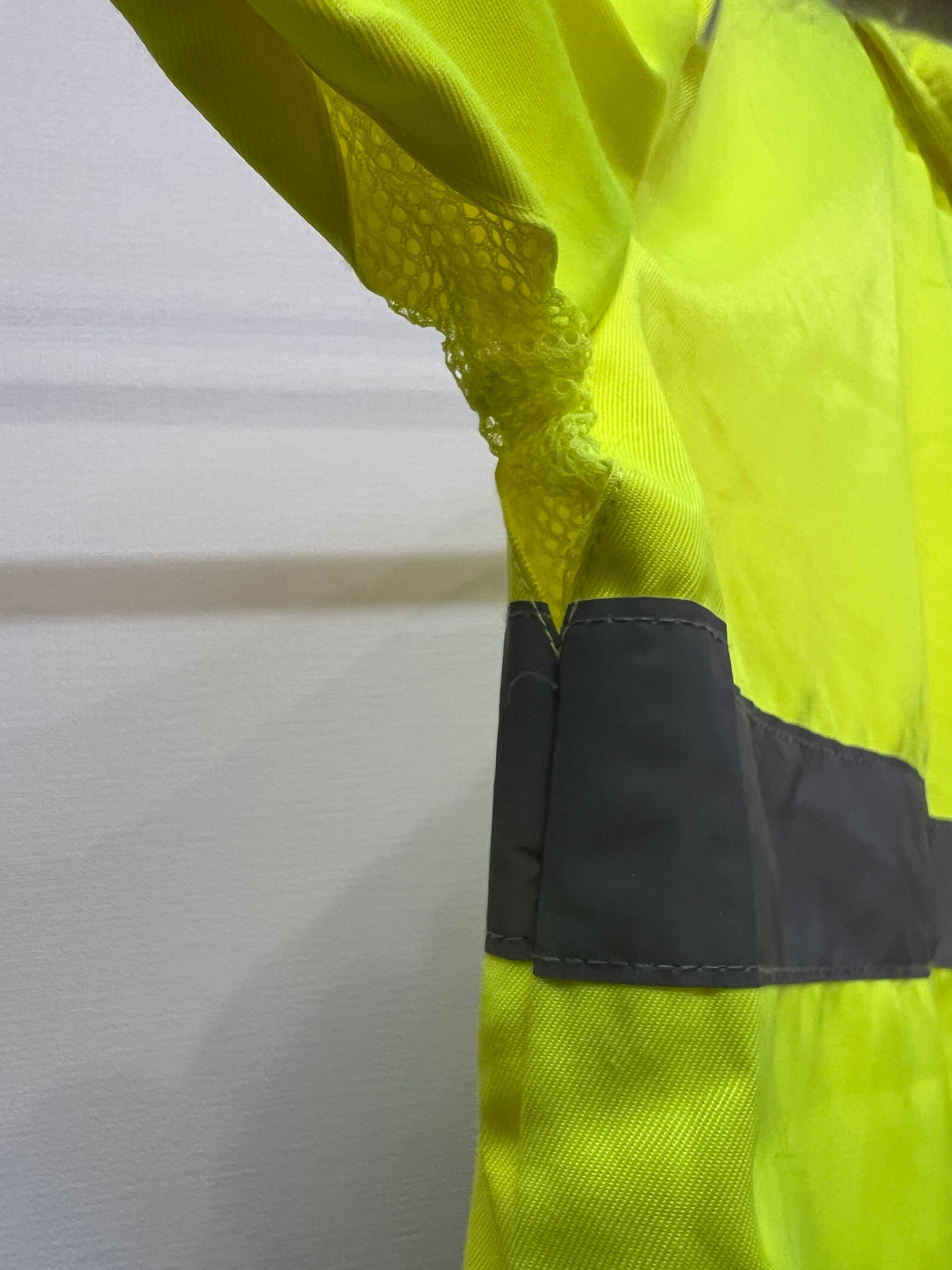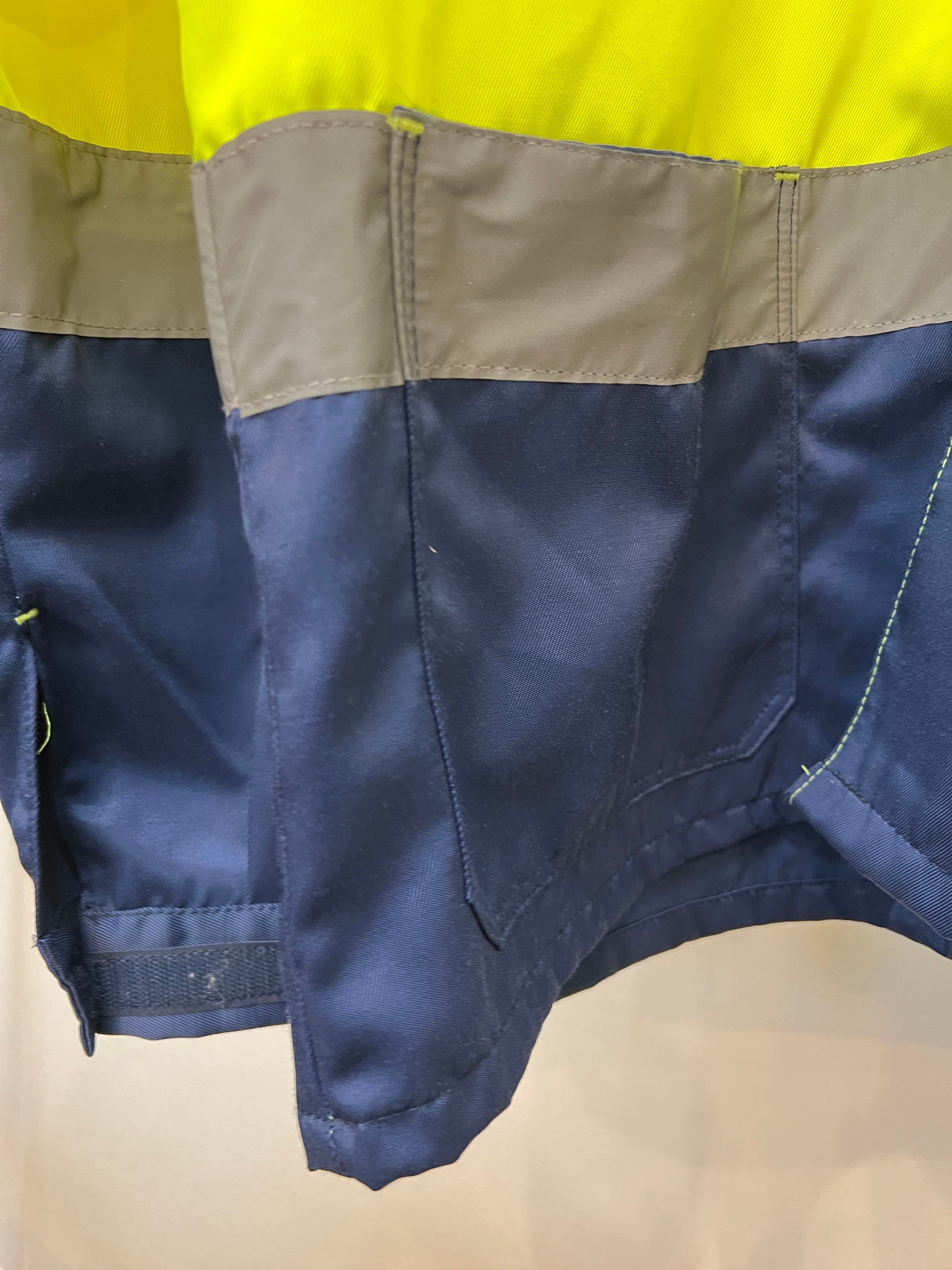 鉄道作業員の為のワークジャケットらしく黄色いボディーは視認性に優れ更にシルバーのリフレクターテープ2本がデザインされております。