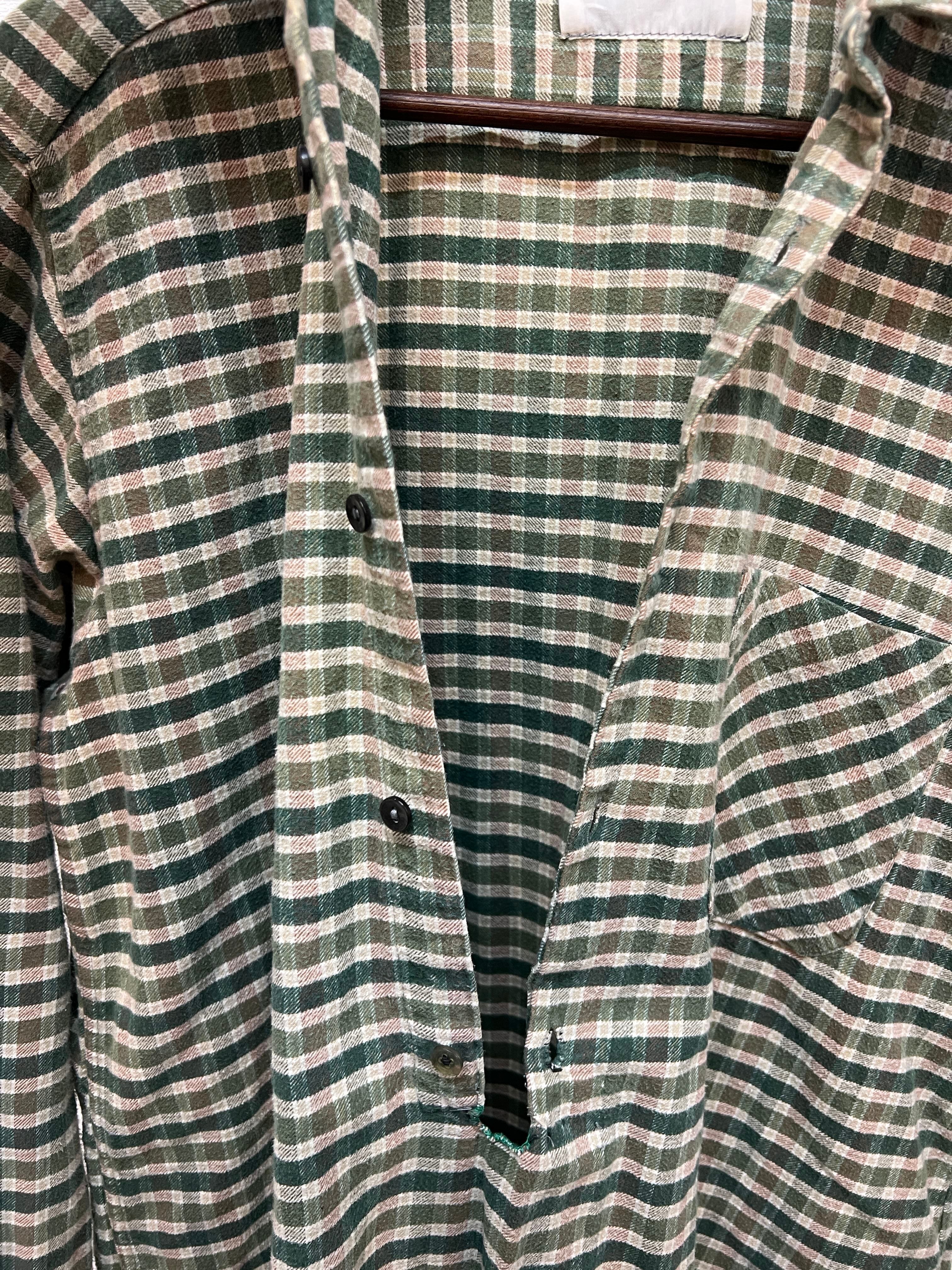 左肩に日焼け、フロントボタン一番下のボタンが付け替えられ、ボタンホールと周辺が補修されております。