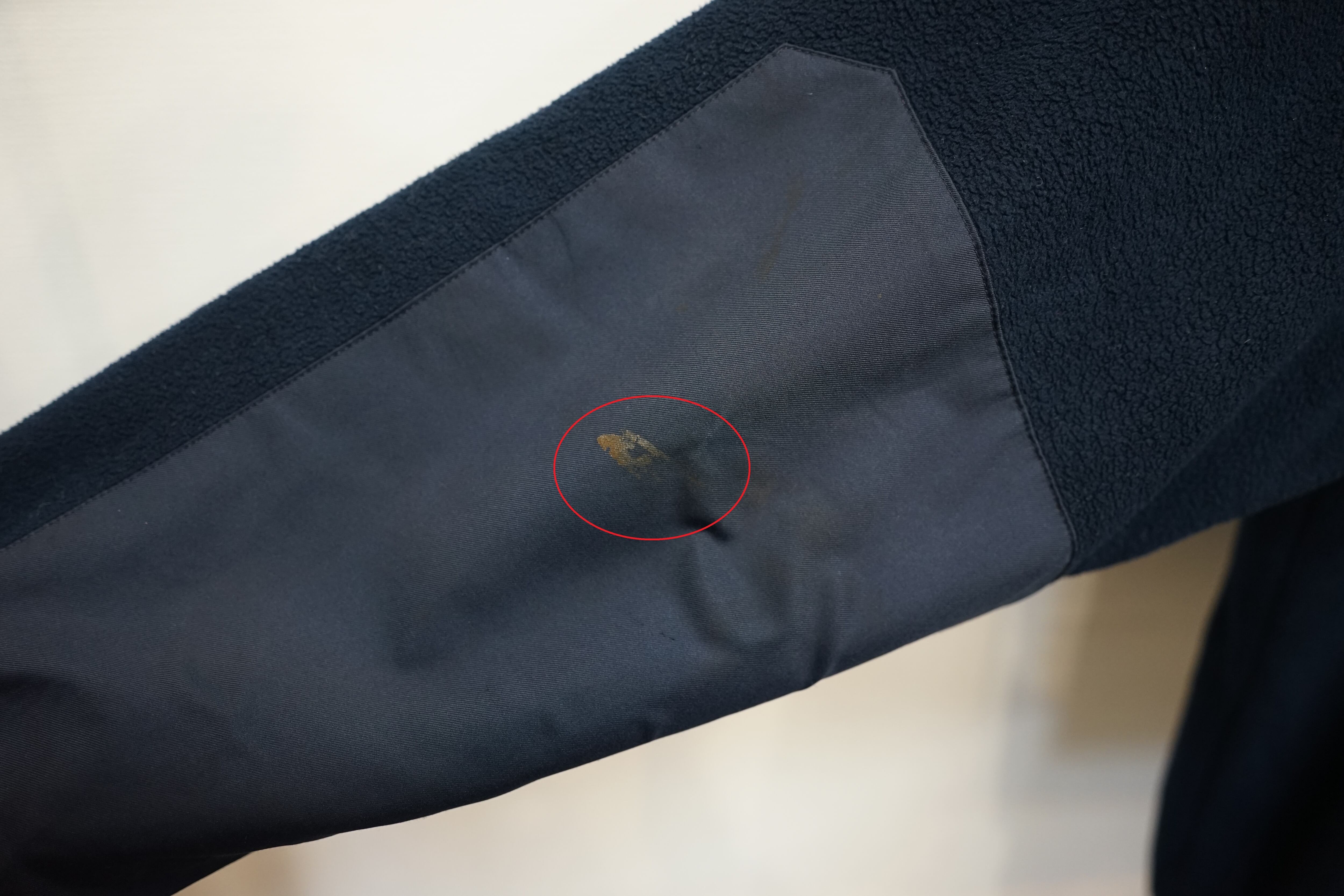 両腕裏側にヨゴレ、左側内ポケットのマジックテープが一部ございません。