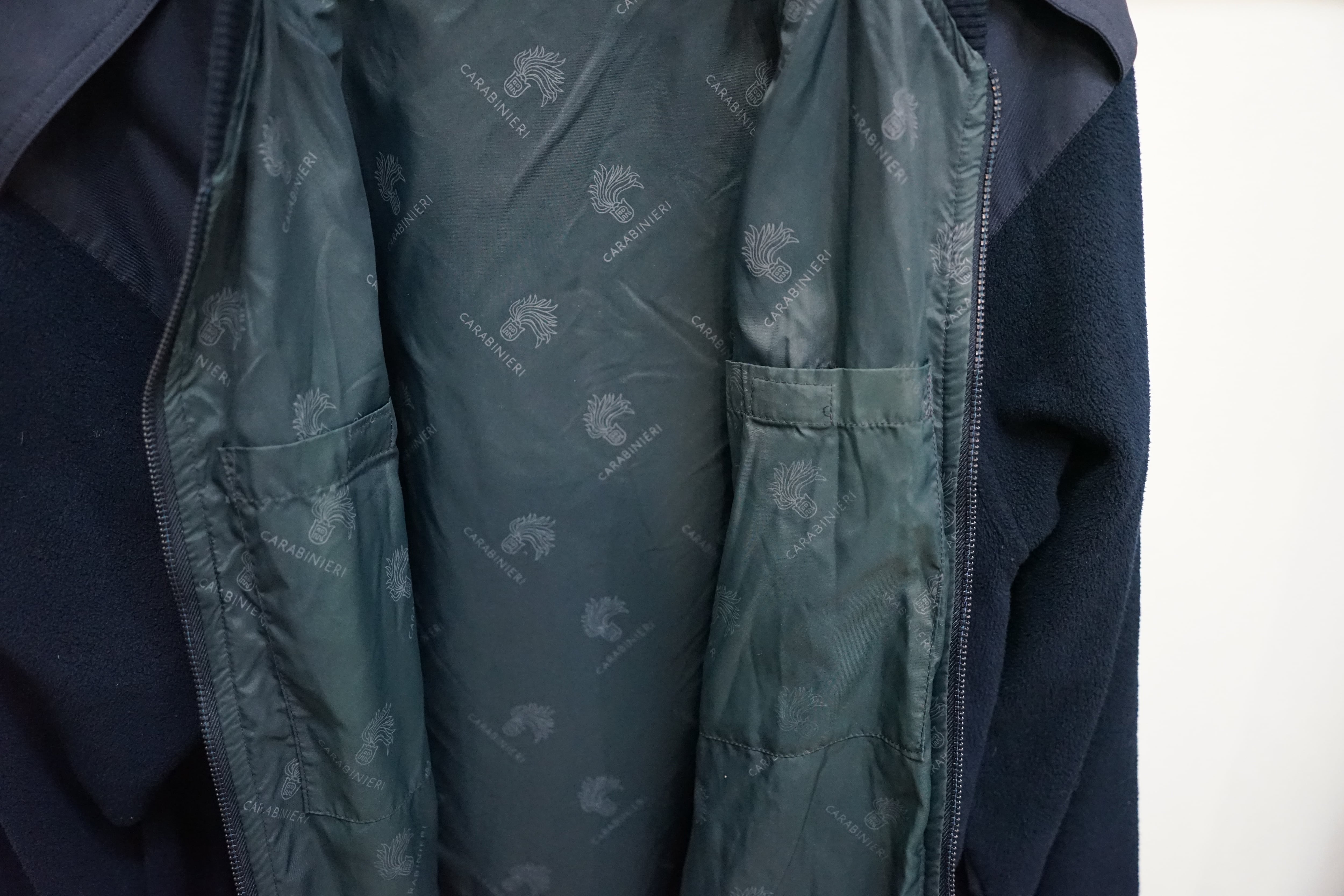 また、内側には「Carabinieri」の文字と紋章が印刷された裏地が付き防風性能のアップが図られております。