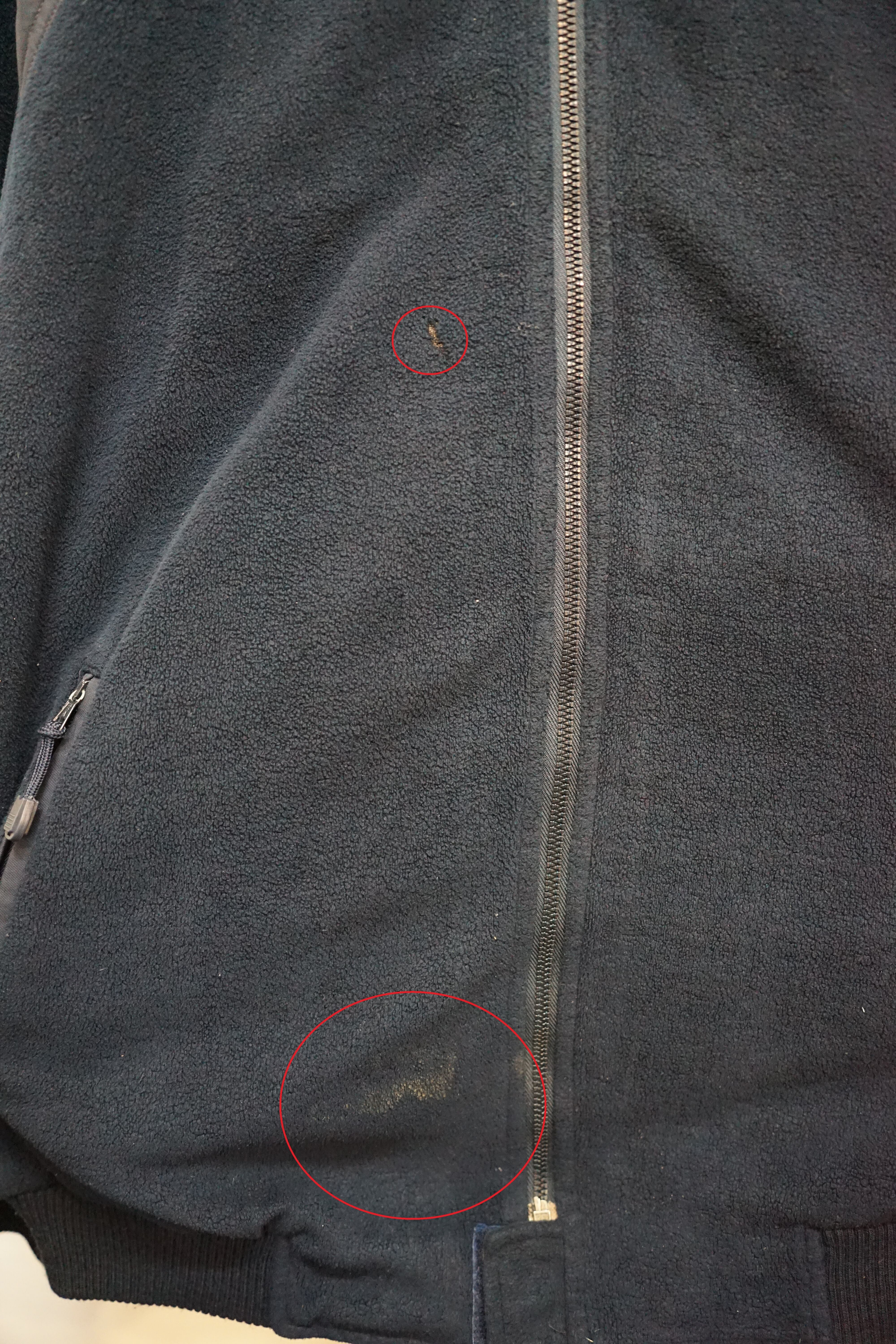 フロントファスナー右側にホツレと比較的目立つヨゴレ。