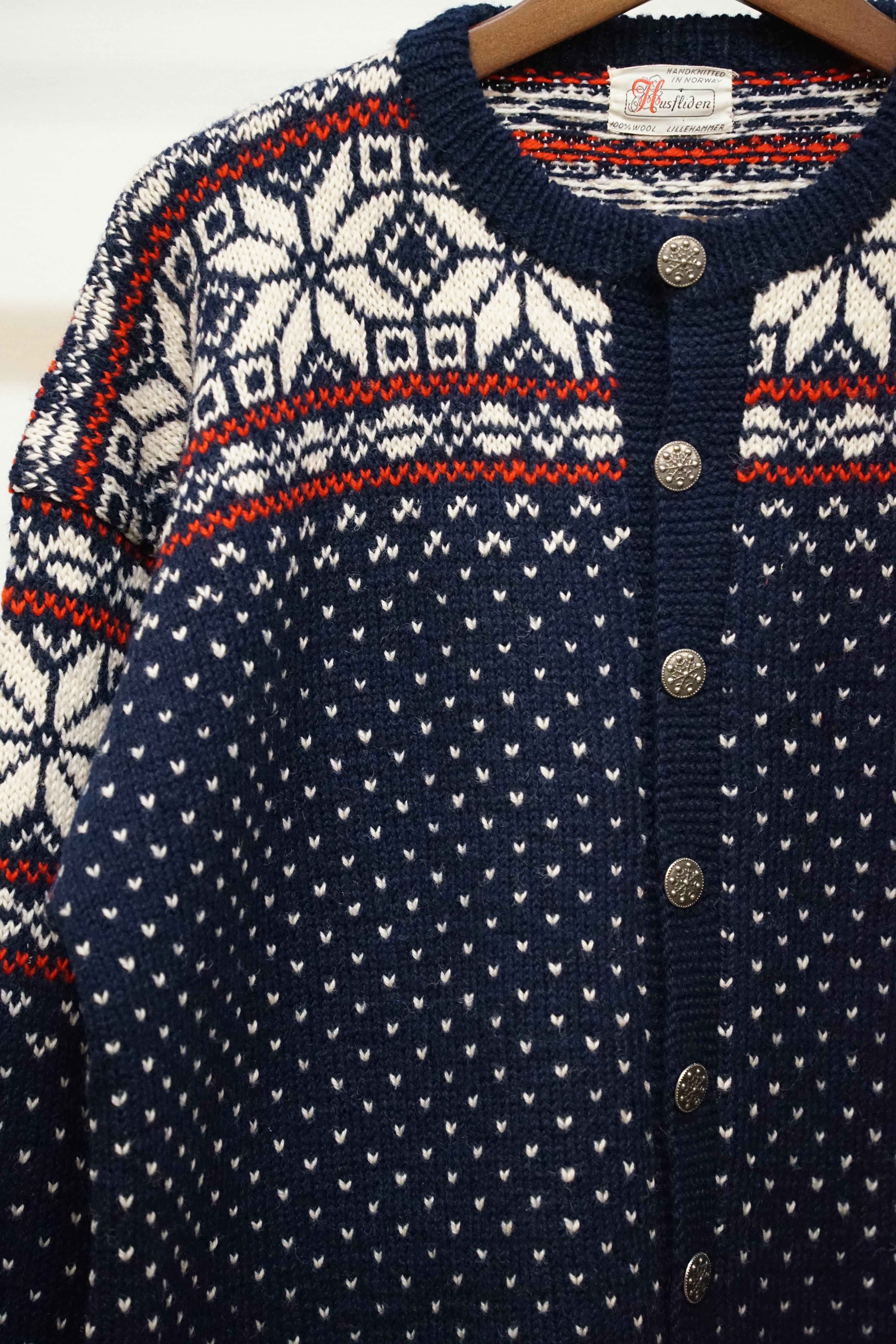 Husfliden 60's 総柄 ウール チロル カーディガン