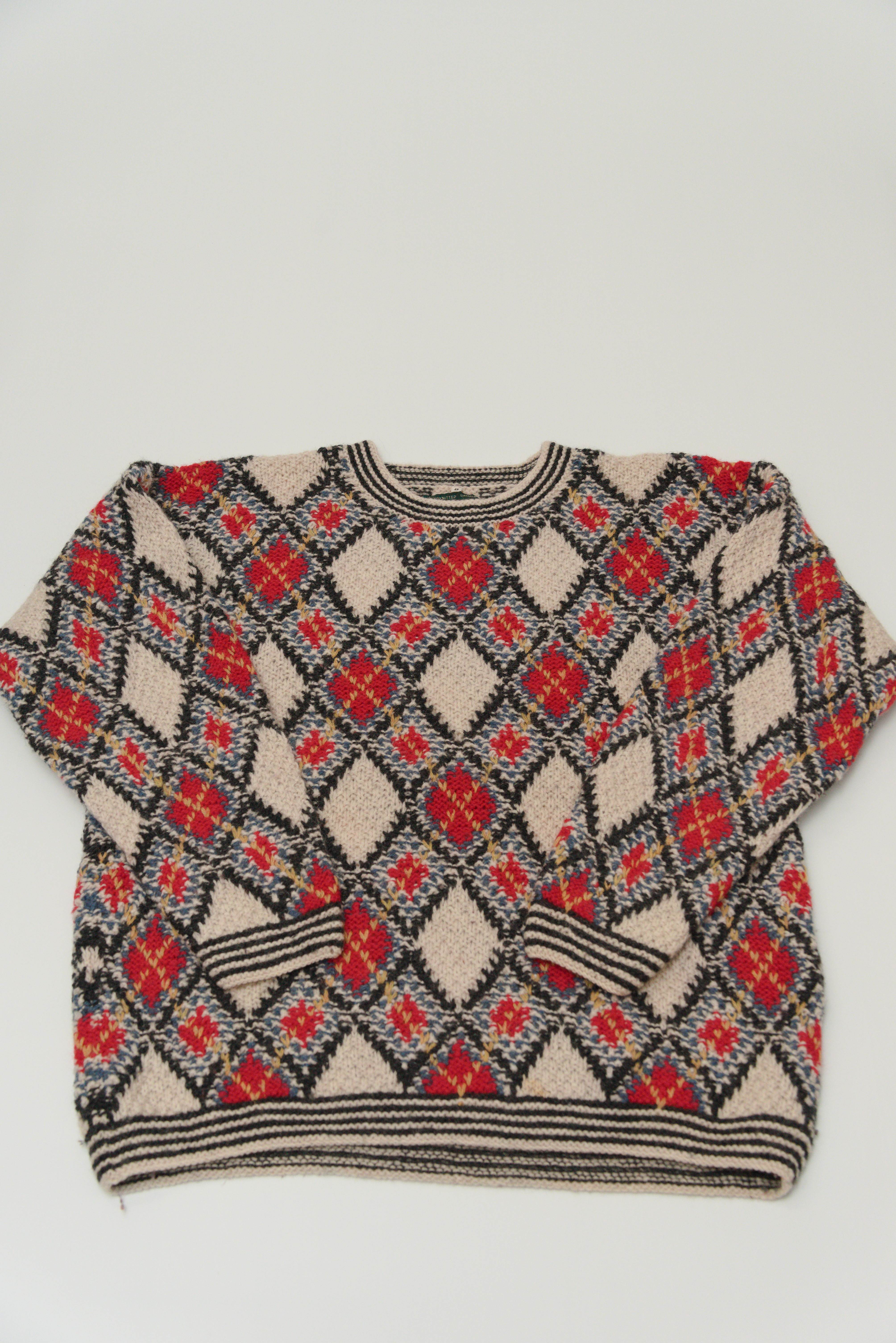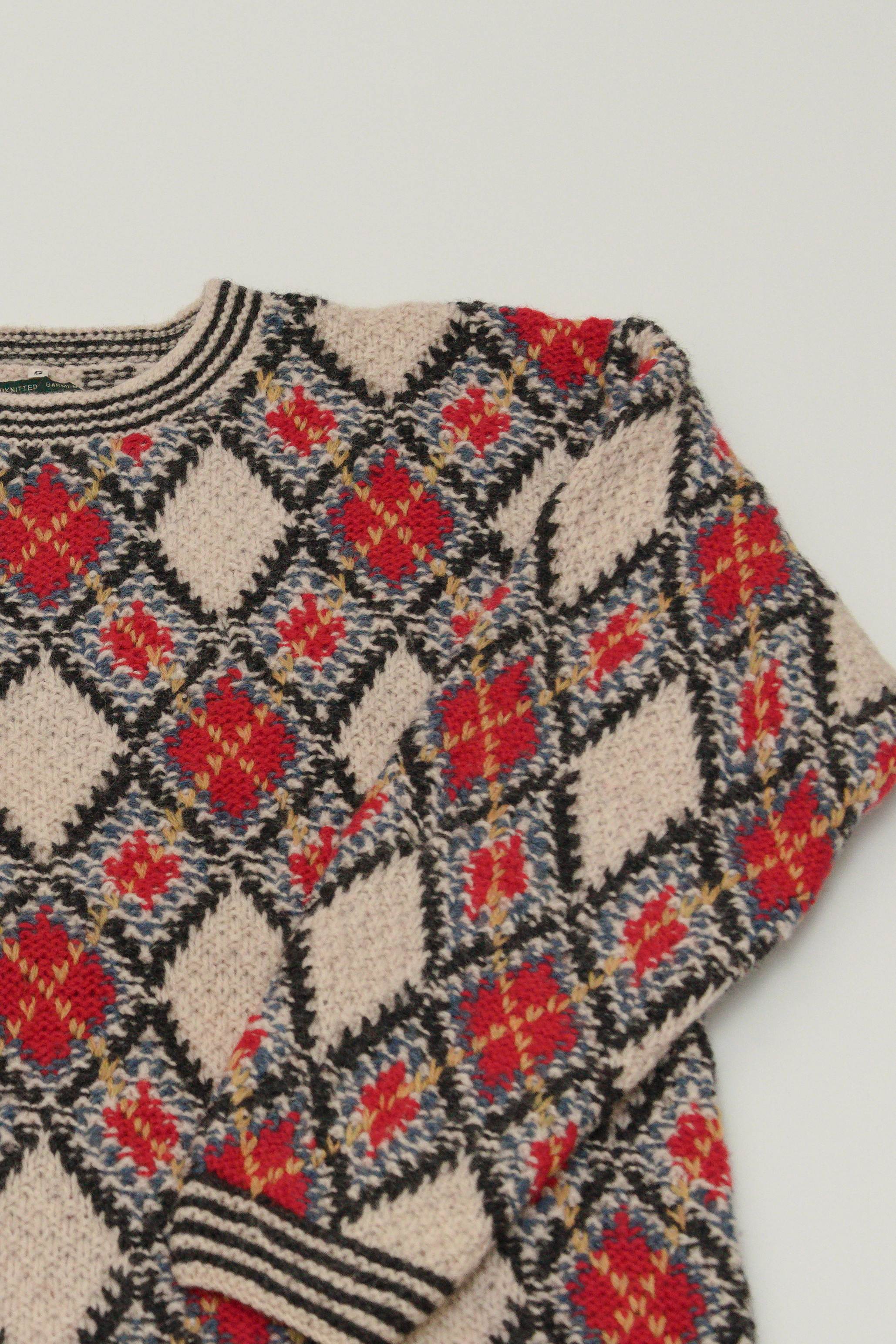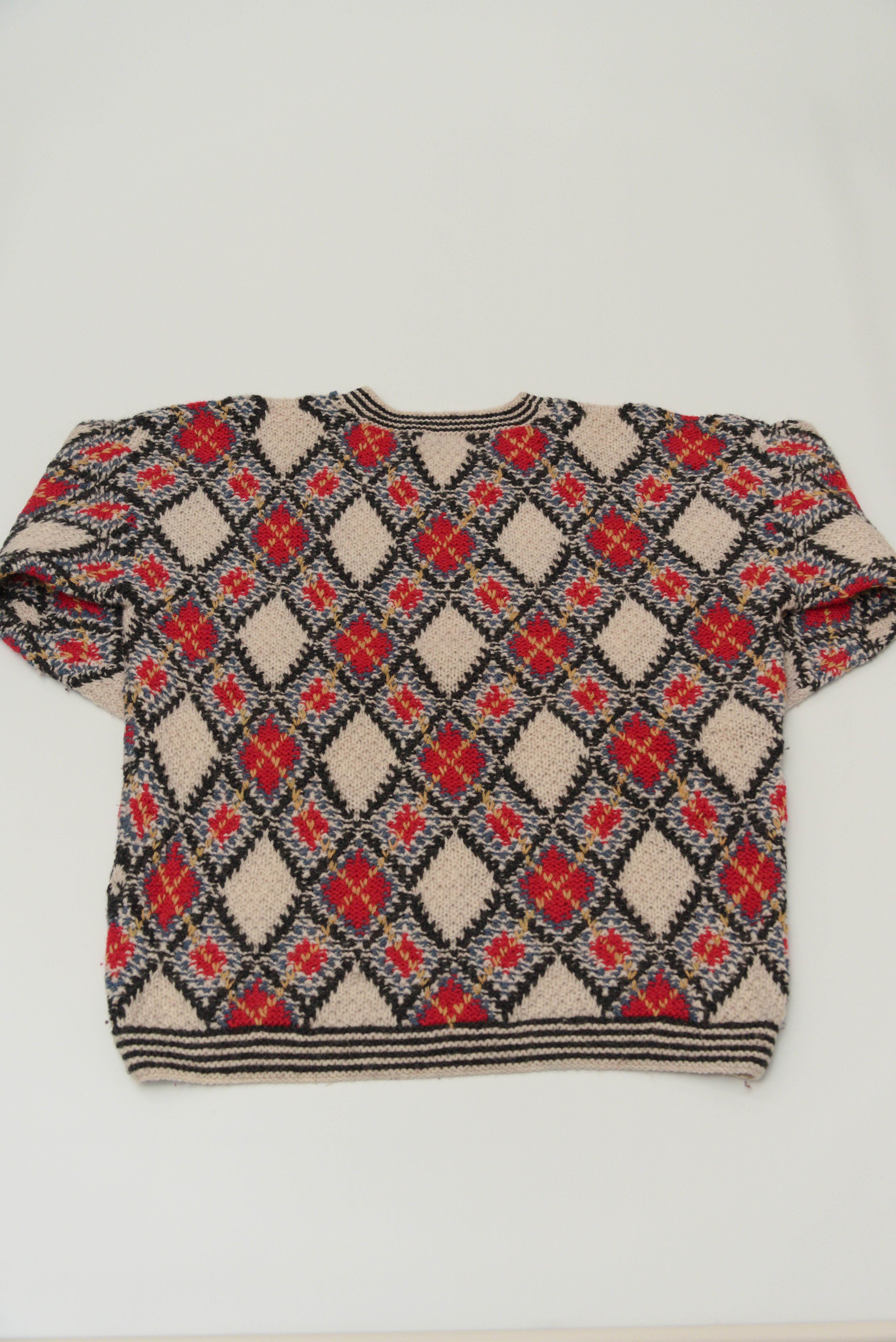 商品説明:シェットランドウールで編まれたアーガイル柄のハンドメイドニットになります。