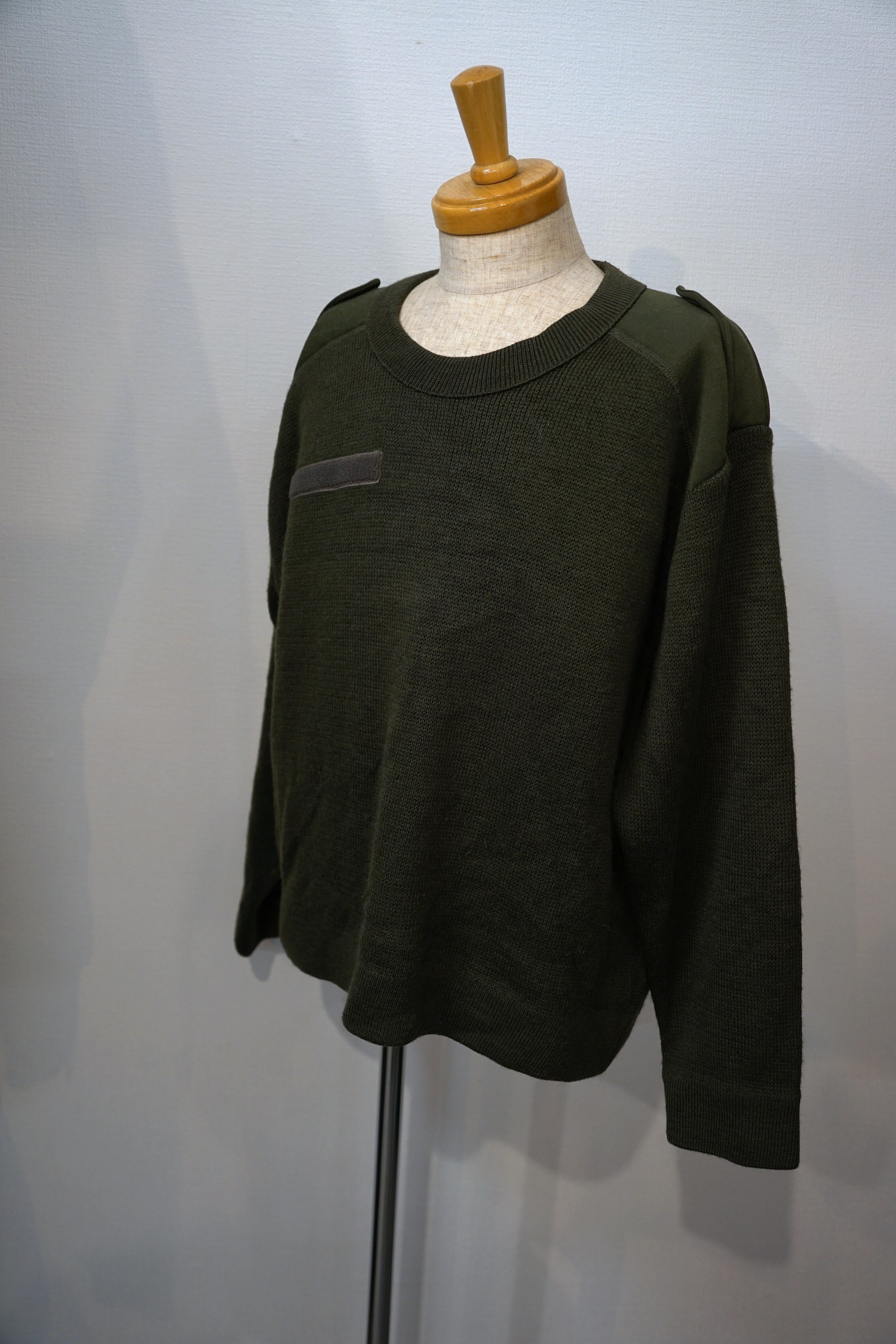 冬のミリタリーアイテムでは定番のコマンドセーターですがフランス軍のセーターは梳毛(そもう)ウールと言う光沢のある糸で高級ニット製品にも使用されている糸とクロロファイバーと言う保温性があり吸水性がない糸を使って作られており非常に機能性の高いセーターとなっております。
