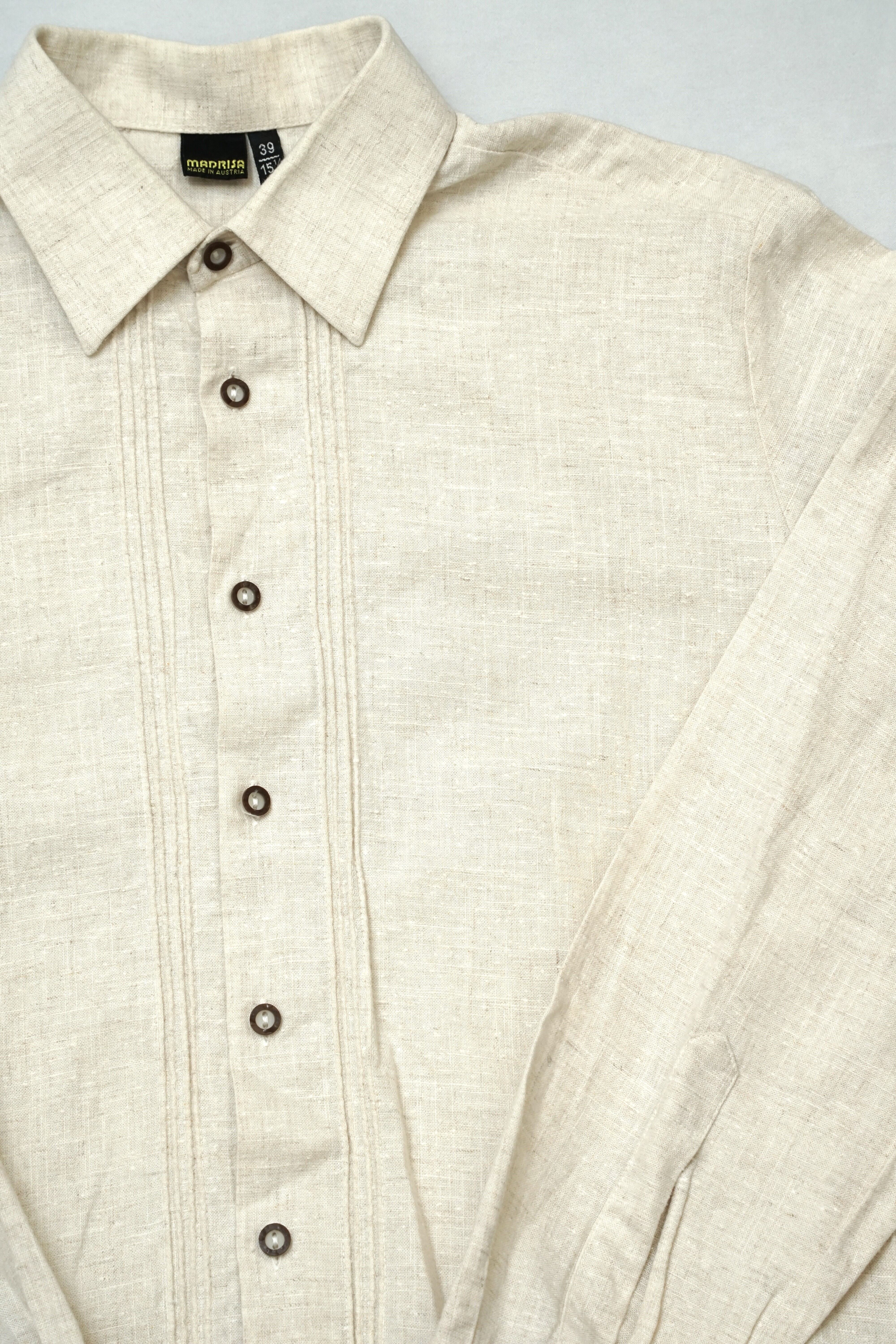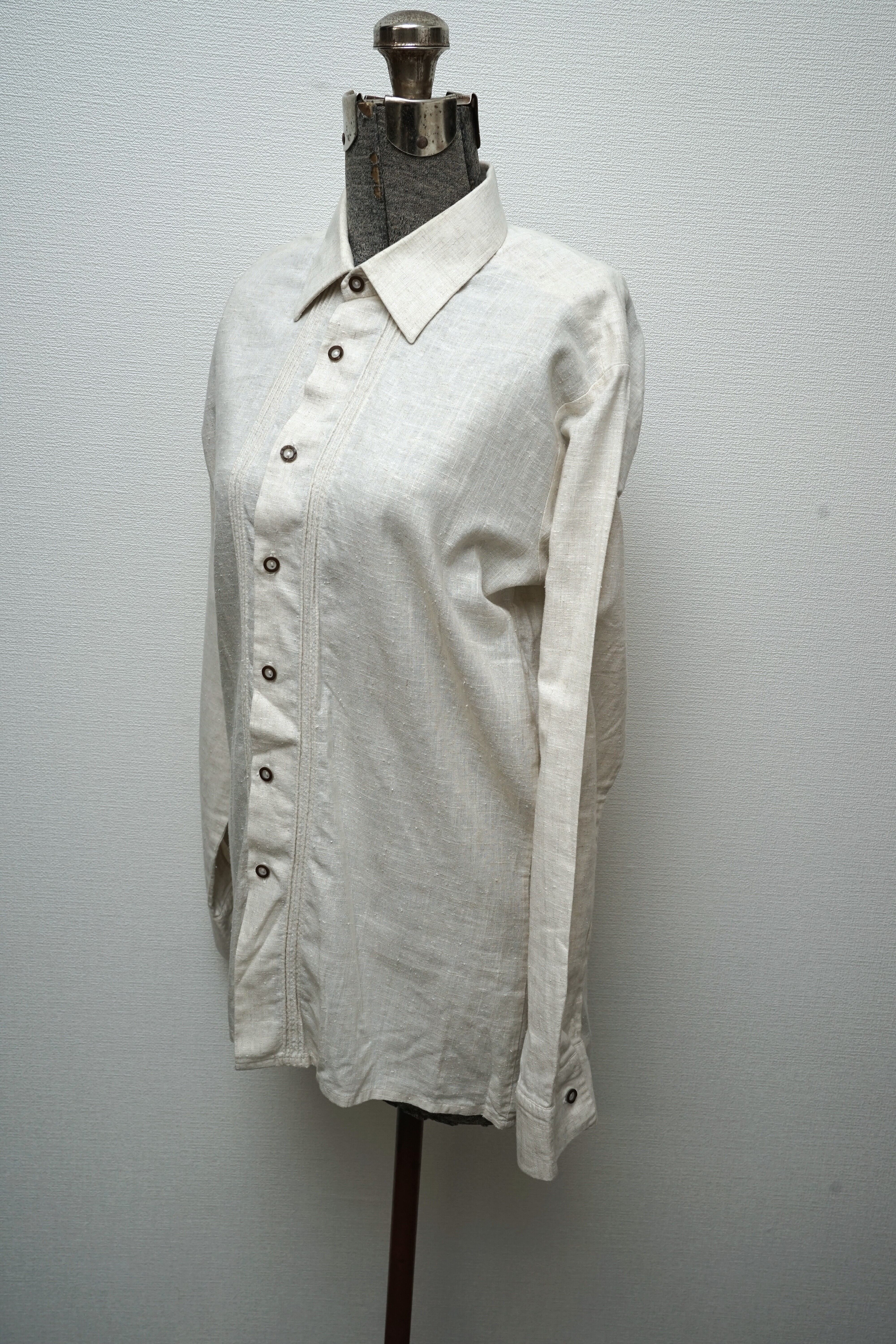 リネン生地ならではのネップ感が楽しめるオーソドックスなデザインのチロリアンシャツです。